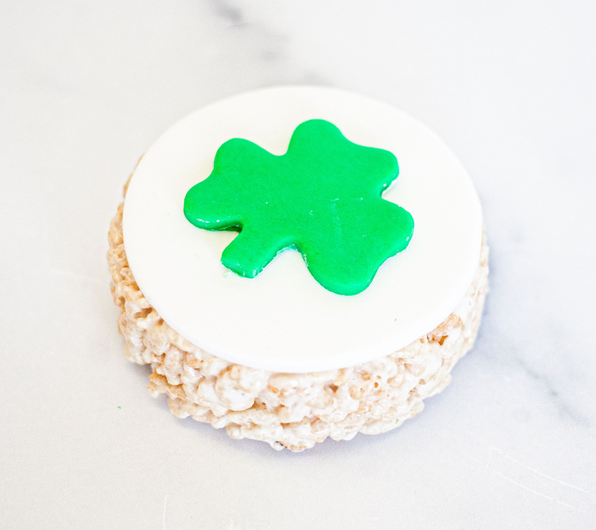 Celebrate St. Patrick's Day in a most dee-licious way! These round rice crispie treats are decorated with buttercream fondant and feature an iconic shamrock. Count yourself lucky if you're gifted with one! They're great for wedding or party favors, too! From Creative Crispies.