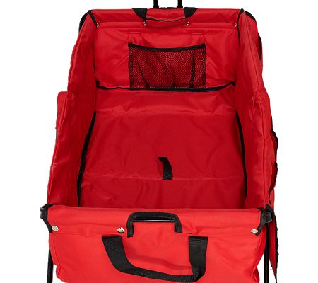 • Expandable utility wagon, fold with one pull on the toggle, extra wide adjustable all-terrain rubber wheels, loopholes, three front pockets, six pockets along the flap
