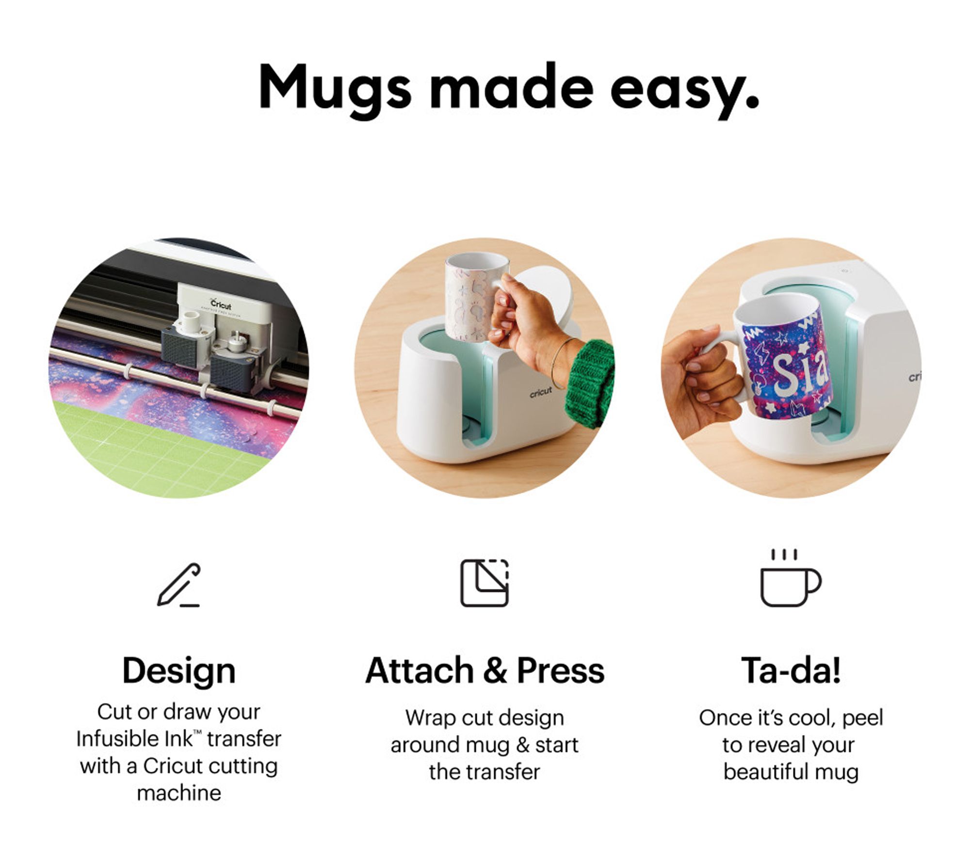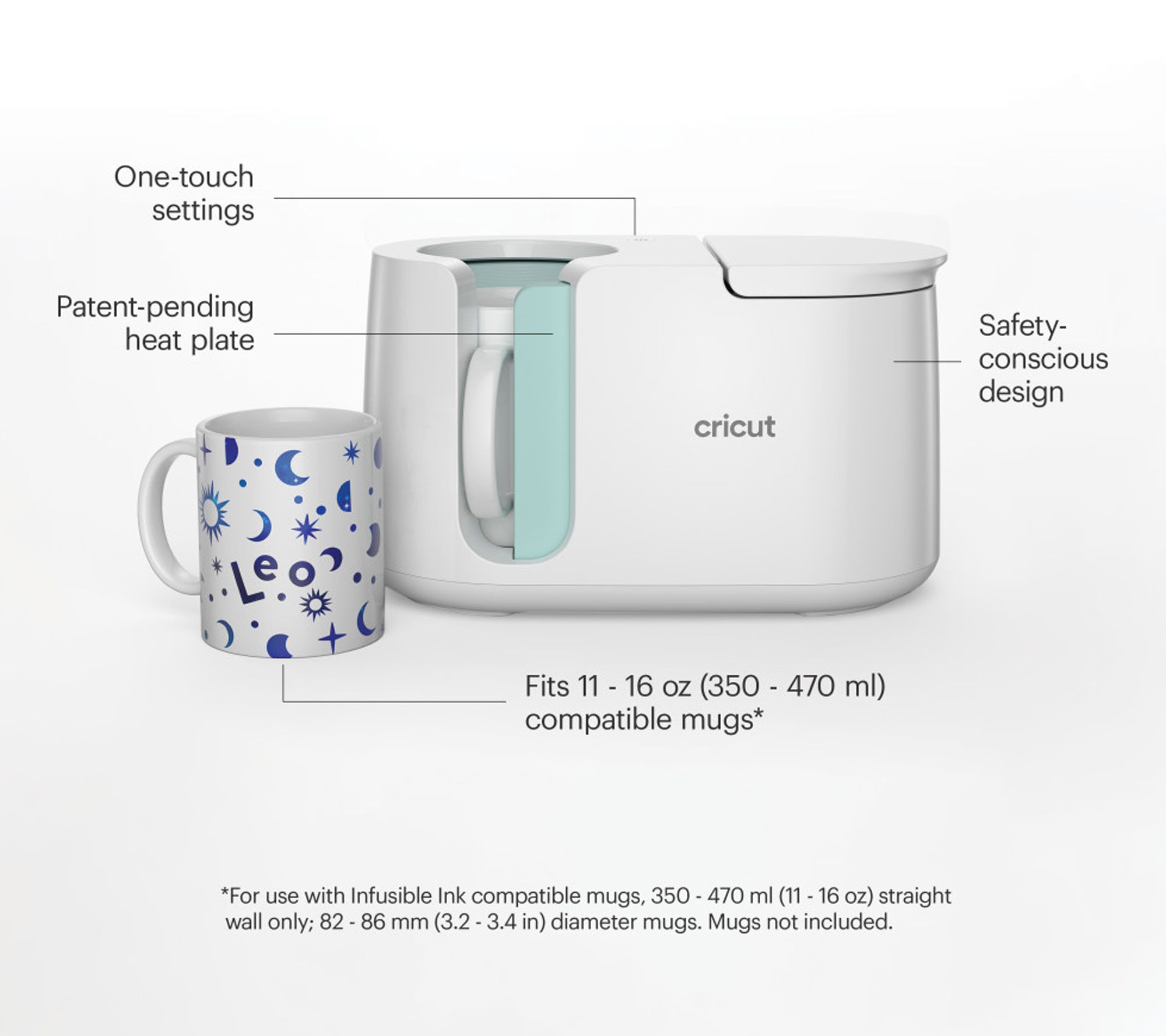 • Includes Cricut Mug Press heat press for mugs and USB cord for activation