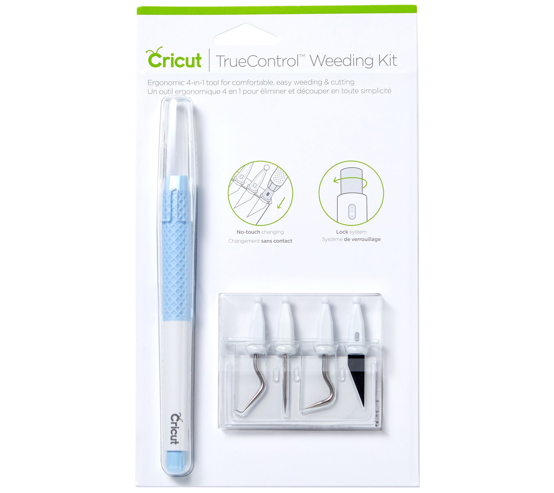 • Includes TrueControl handle, weeder tip, hook weeder tip, piercing tip, nonstick blade, and self-healing mat