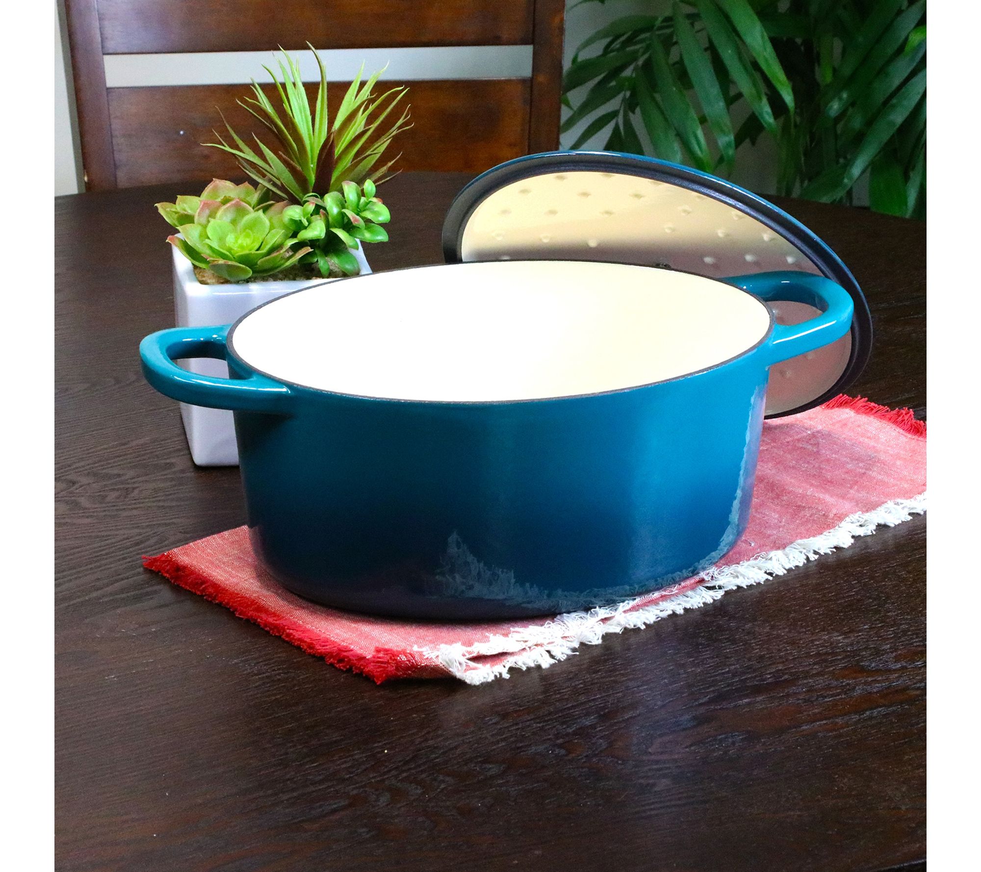 Crock Pot Artisan 7qt Enameled Cast Iron Oval Dutch Oven Teal