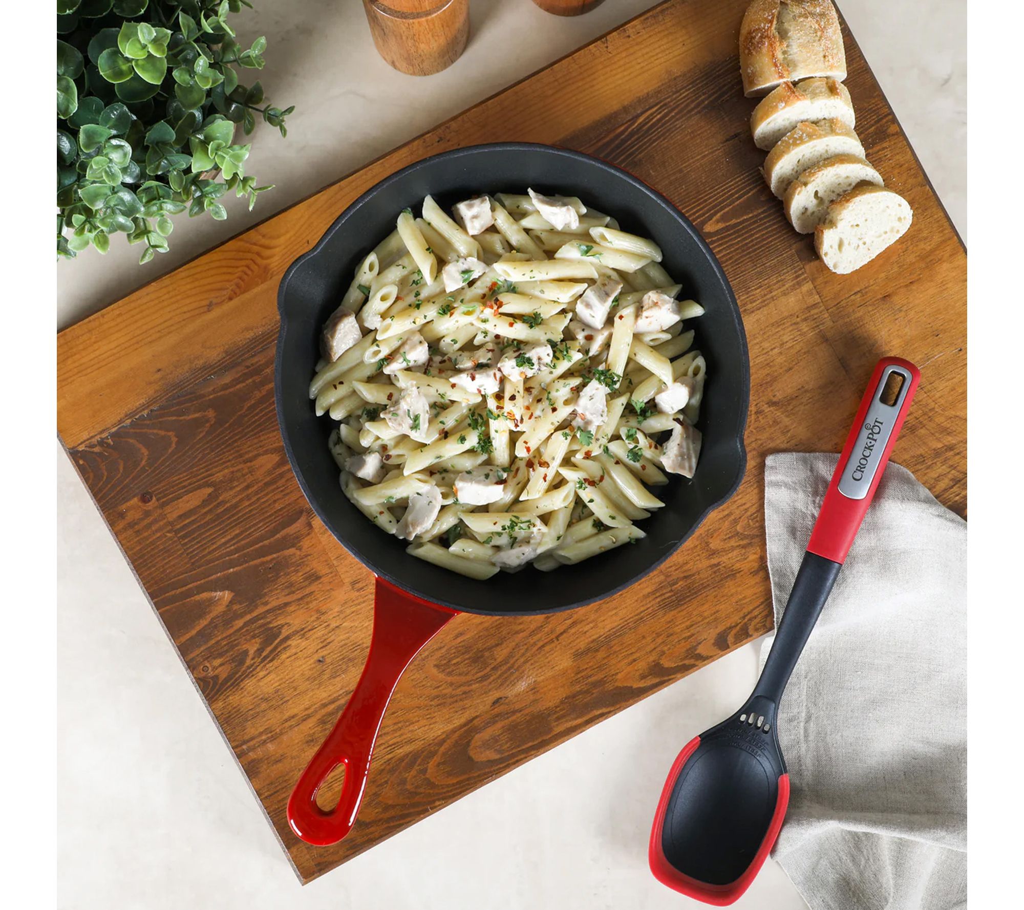 From sizzling morning scrambles to savory skillet dinners, this enameled cast iron skillet brings both beauty and performance to your kitchen. Its superior heat distribution makes it simple to sear, saute, or bake, while the vibrant gradient red finish adds a pop of color from stovetop to table. From Crock-Pot.
