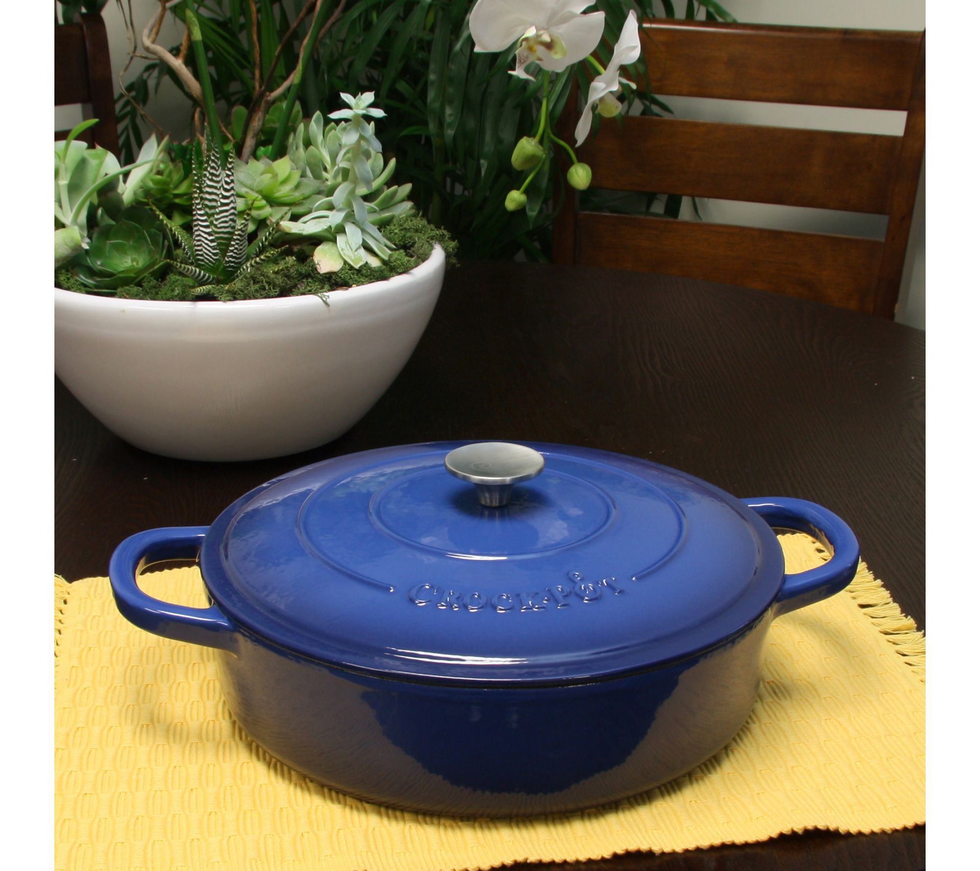 Crock Pot Artisan Enameled 5qt Round Braiser Pan Sapphire Blue