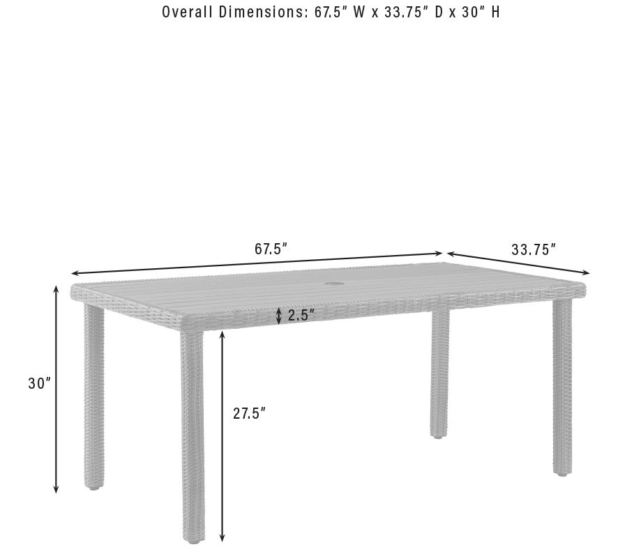 • Approximate measurements: Table 67.5"W x 33.75"D x 30"H, supports up to 59.18 lbs; Chair 17.75"W x 19.75"D x 31.5"H, supports up to 12.65 lbs