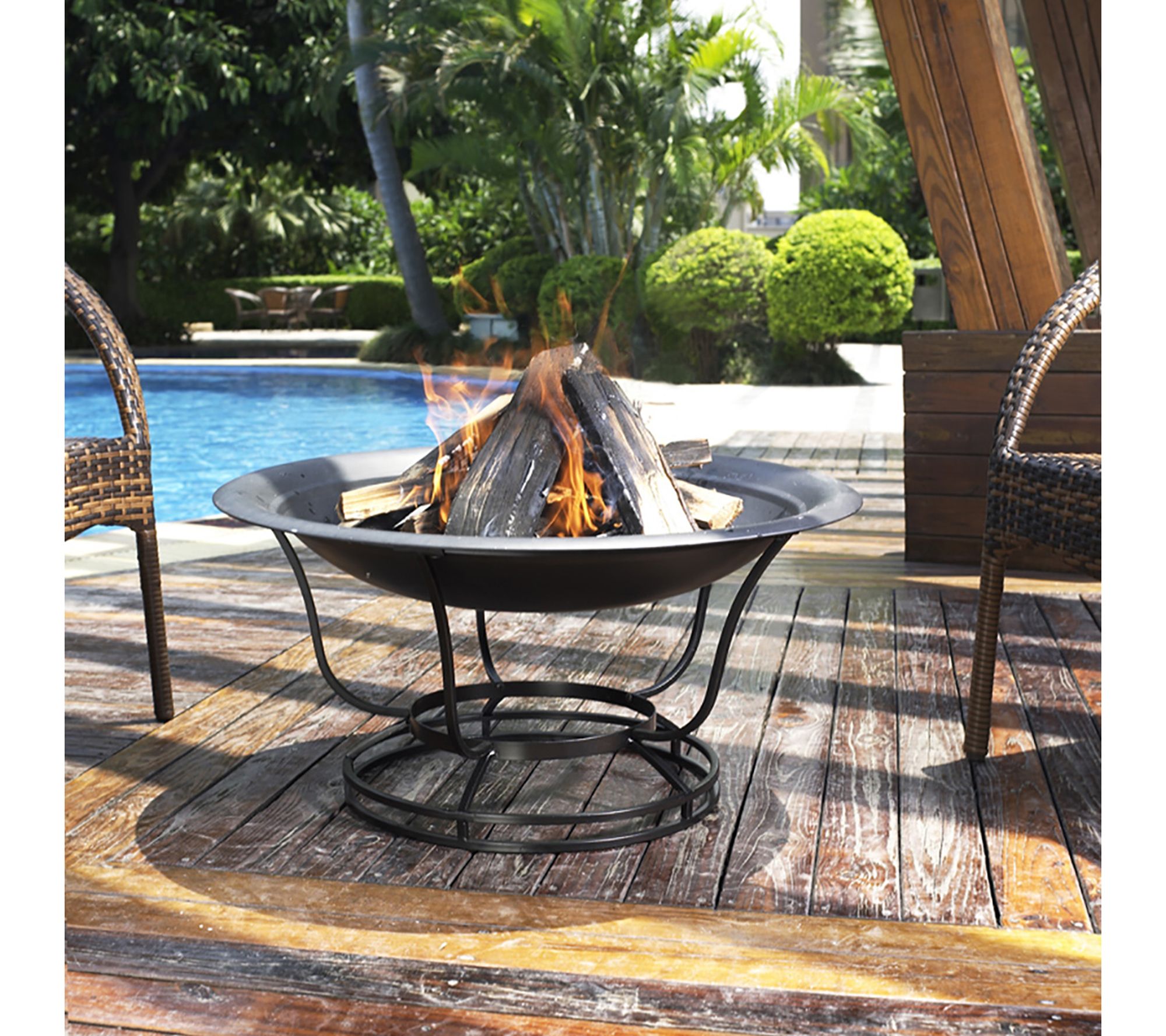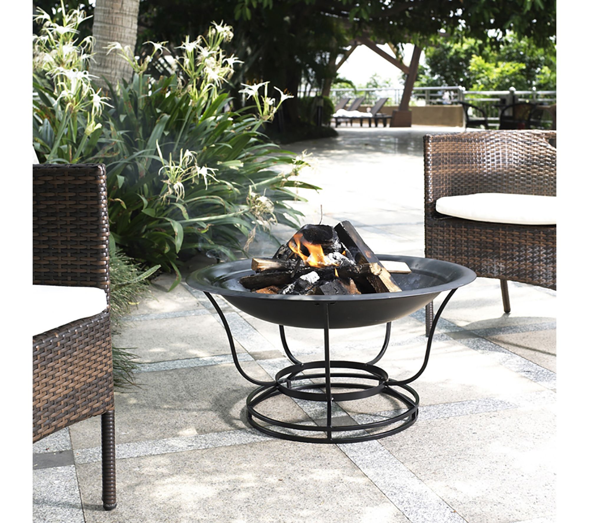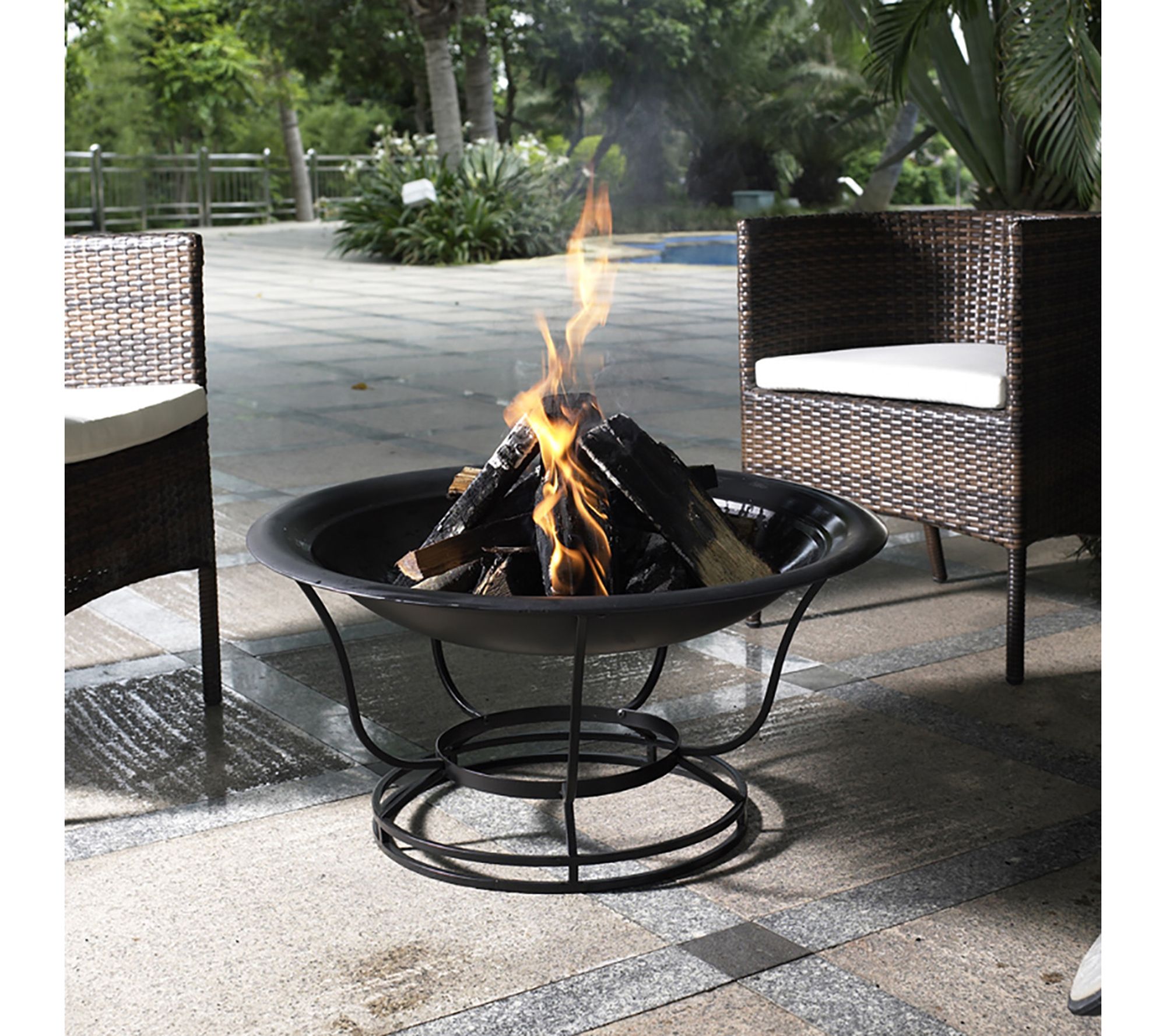 • Includes firepit, mesh cover, and poker