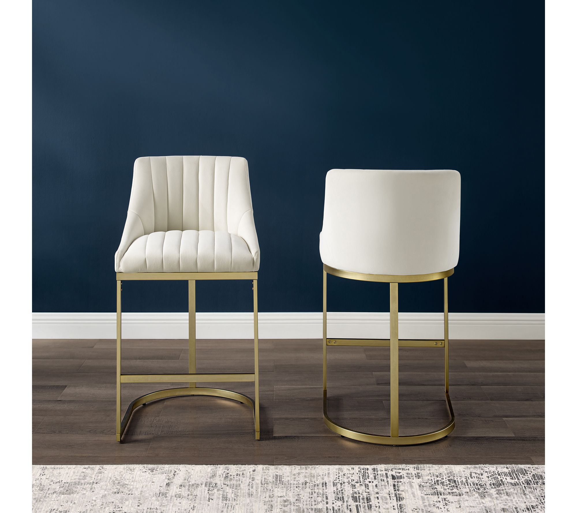Add a touch of elegance to your kitchen or dining area with the Crosley Esme 2-Piece Counter Height Bar Stool Set. Creme fabric seats with channel tufting create a cozy, refined look, while sturdy metal bases provide a sleek contrast. From Crosley.