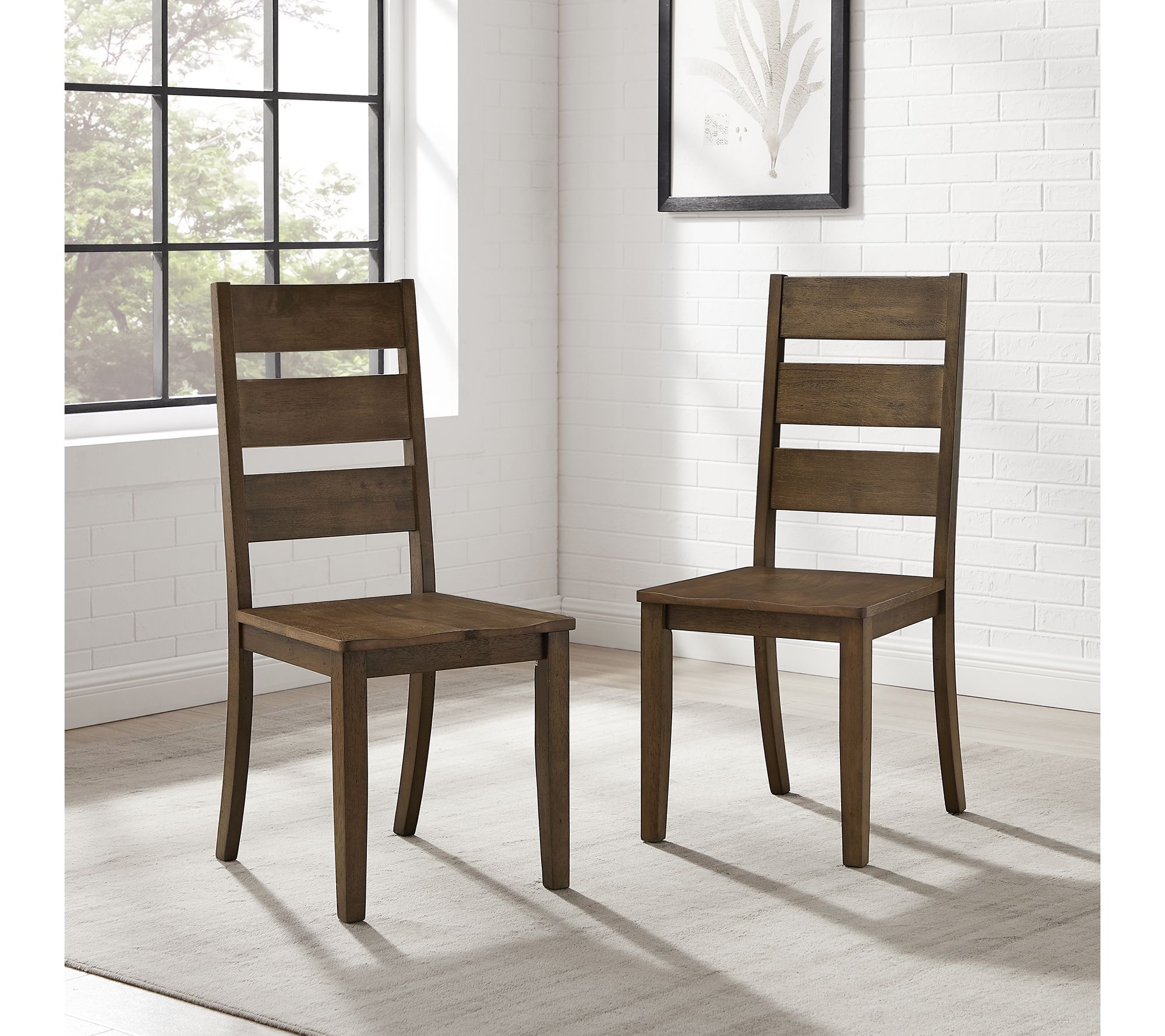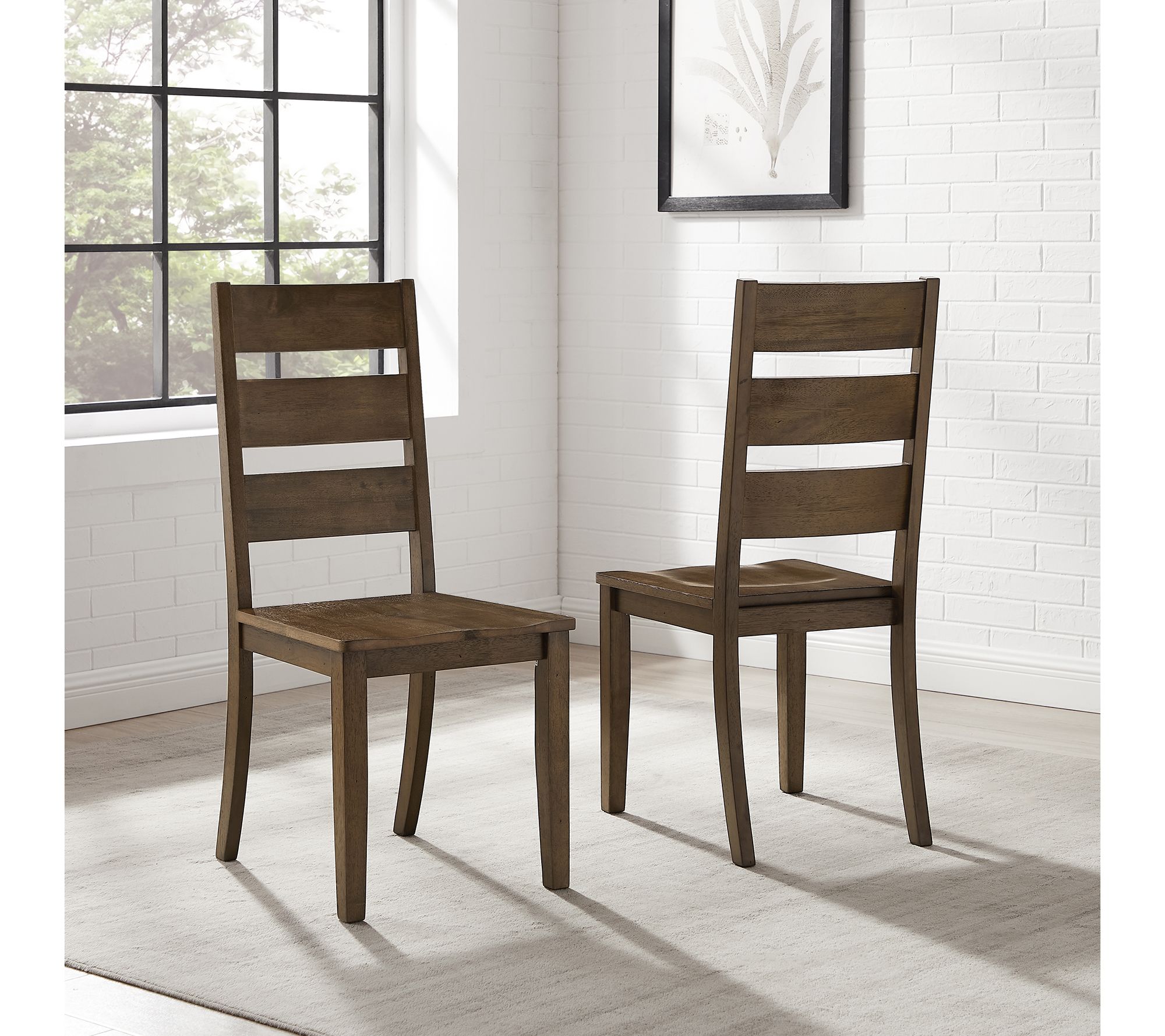 Bring a touch of farmhouse charm to your dining area with the Joanna 2-Piece Ladder-Back Dining Chair Set. With wide horizontal slats and beautifully contoured wood seats, these chairs blend rustic elegance with modern farmhouse design, making them ideal for a variety of decor styles. From Crosley.