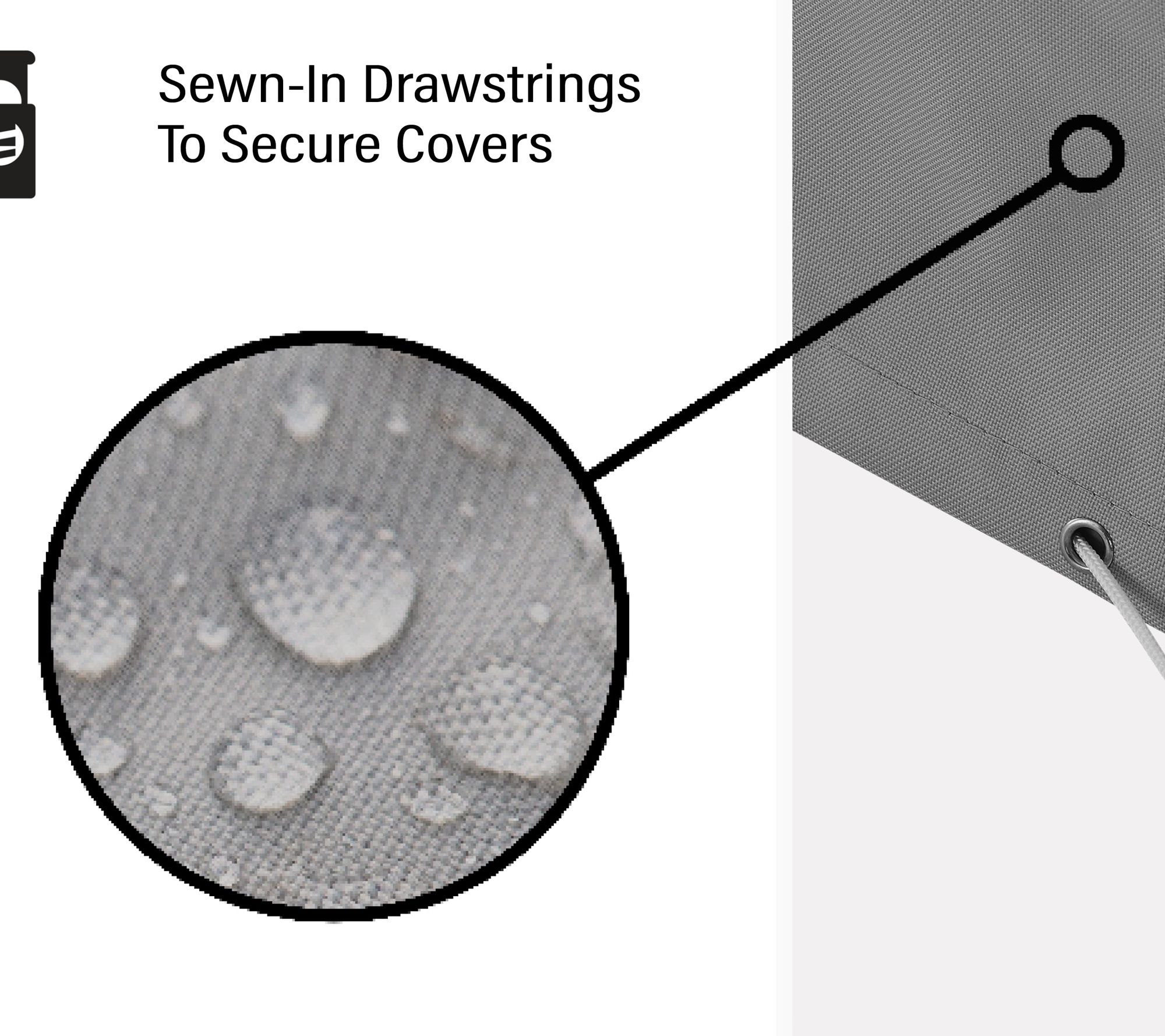 • Sewn-in drawstrings secure covers to furniture