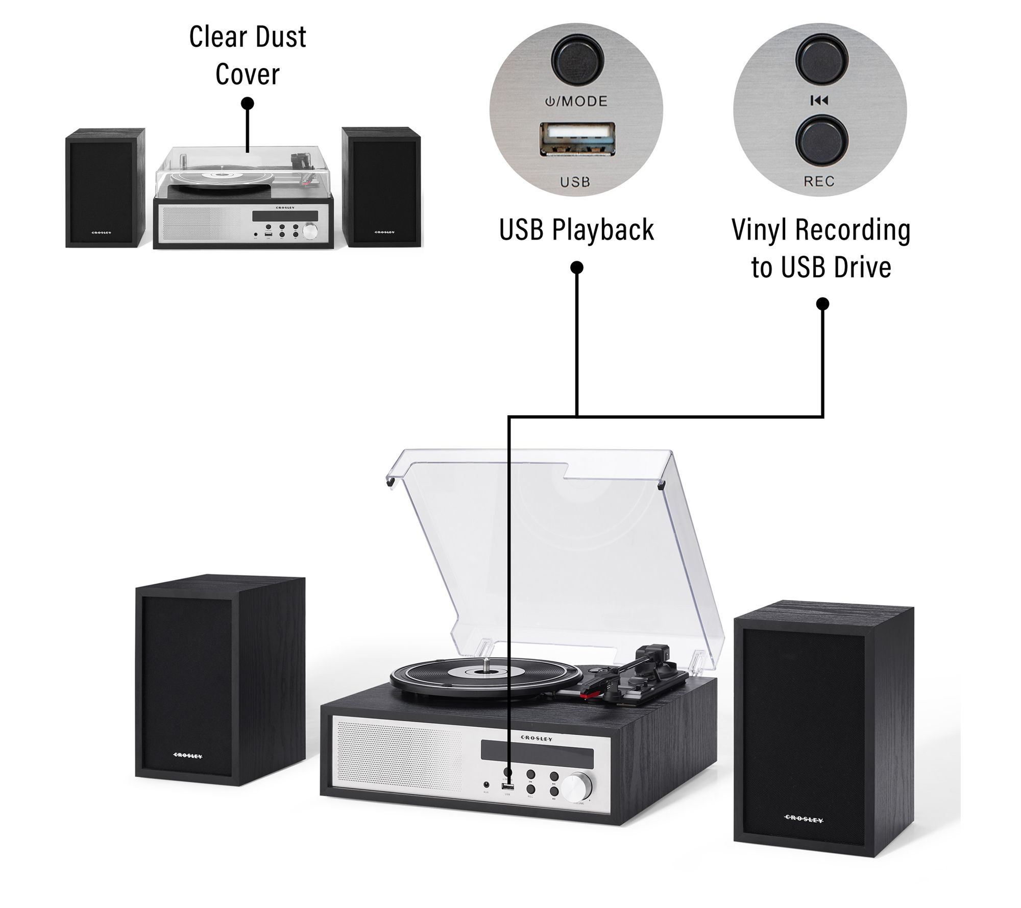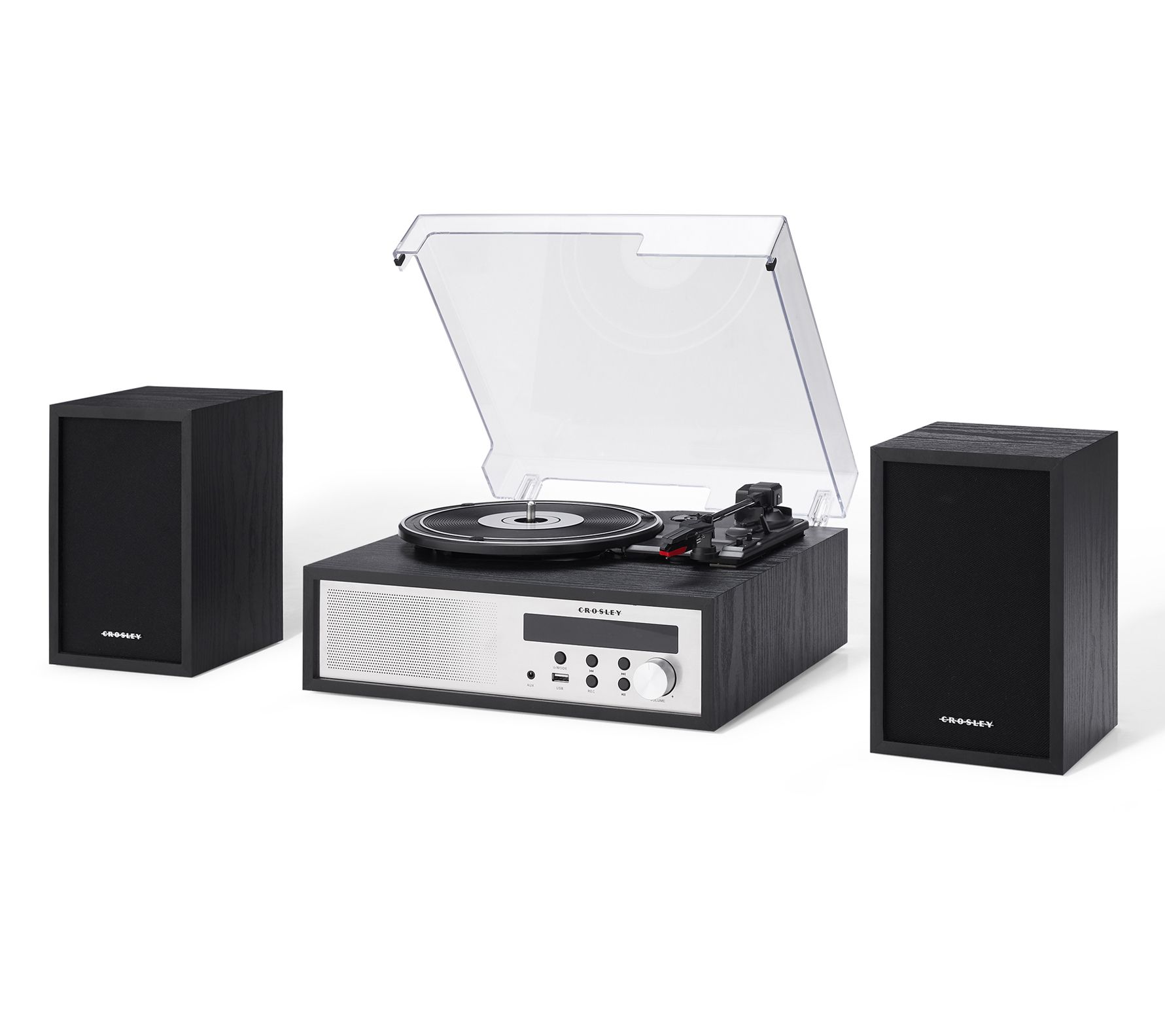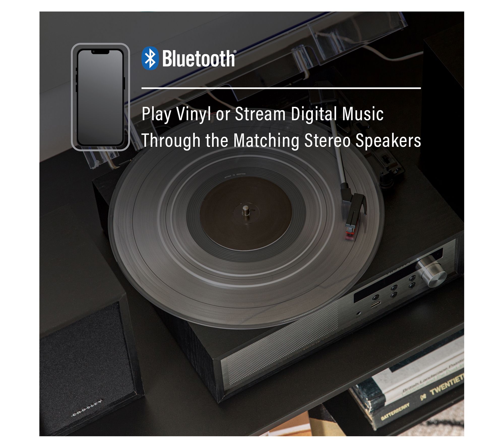 Want to give your records a break? No problem. It also offers optional USB playback, an FM radio, and digital music streaming via Bluetooth or aux input. Go ahead and treat yourself to a sweet new setup that sounds as good as it looks. From Crosley Radio.