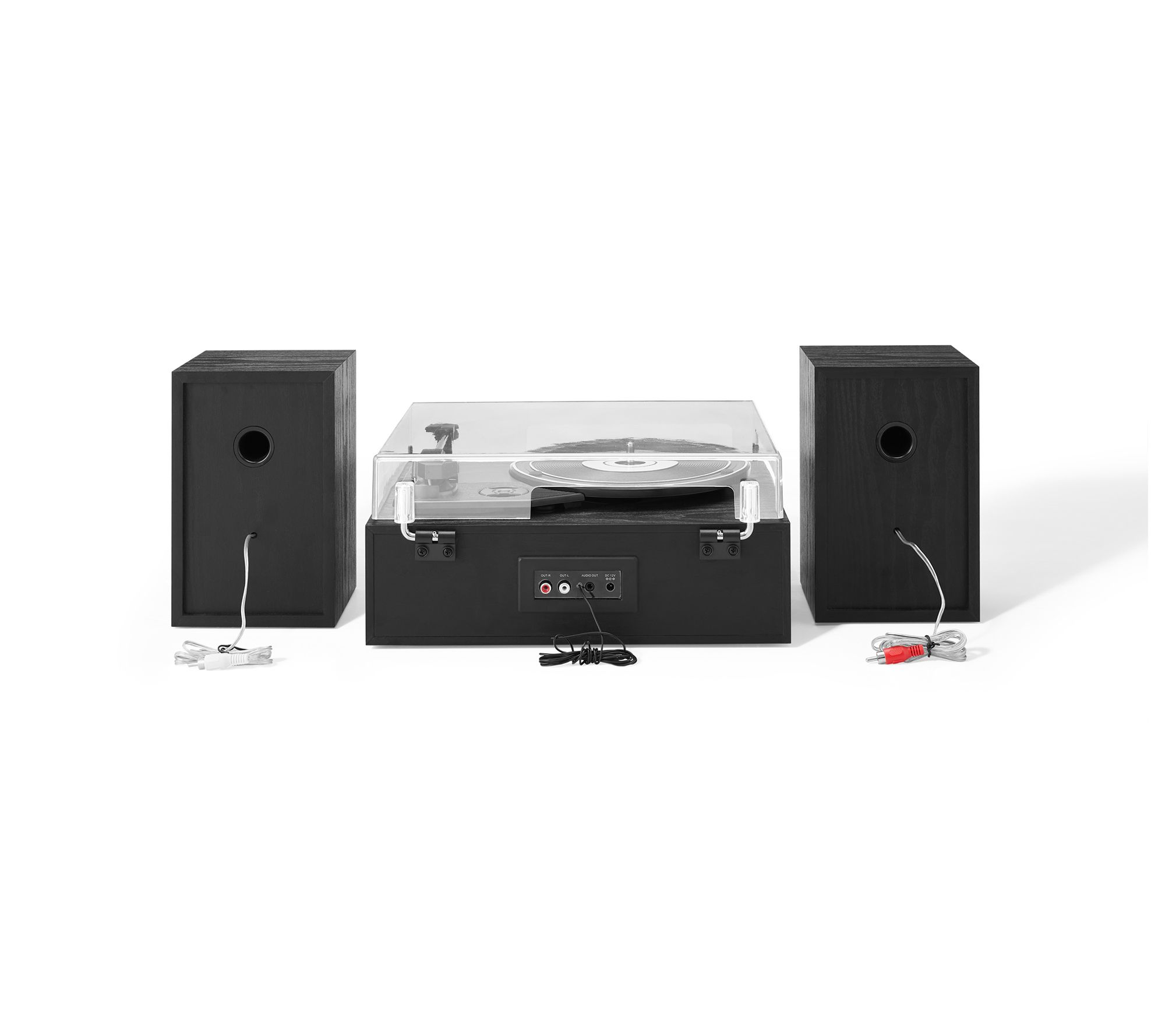 Includes Sloane turntable, two speakers, 45 RPM adapter, and power cord