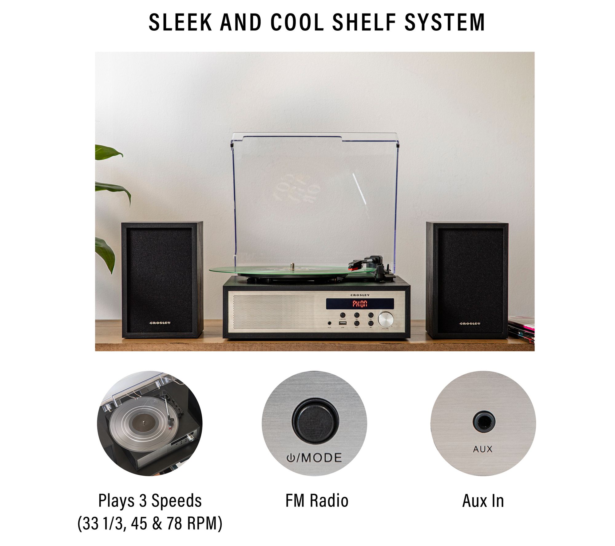 Looking for a modern turntable setup that is as sleek and cool as your tunes are? Scroll no further! The Crosley Sloane is the all-in-one shelf system you have been searching for! It features a three-speed turntable and two matching speakers.