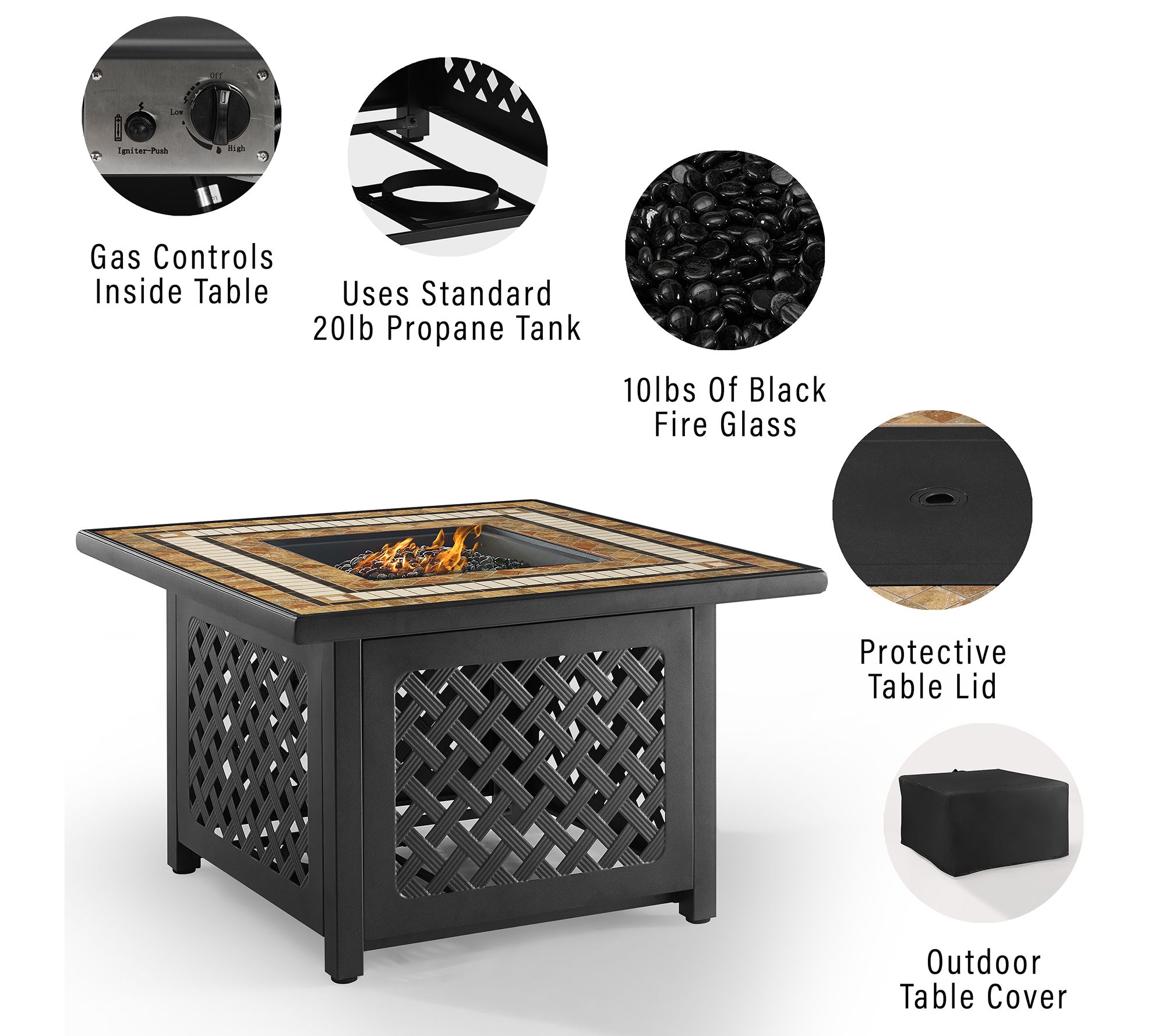 • 50,000 BTU propane fire pit