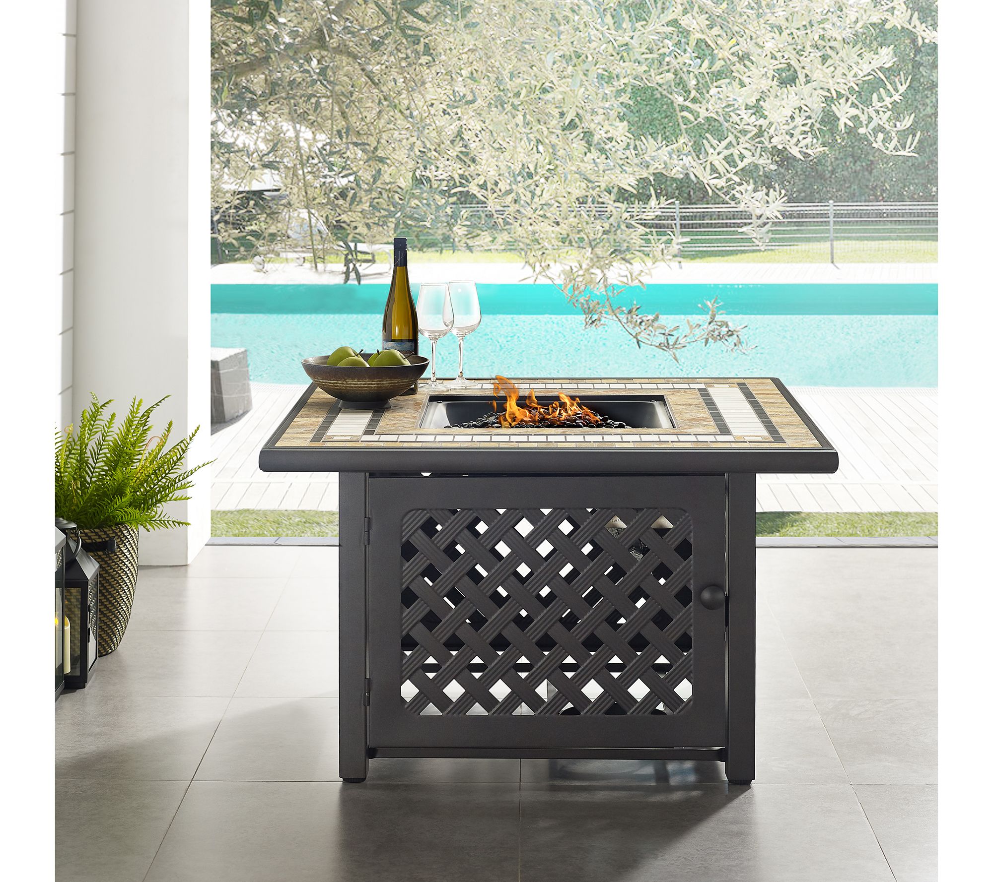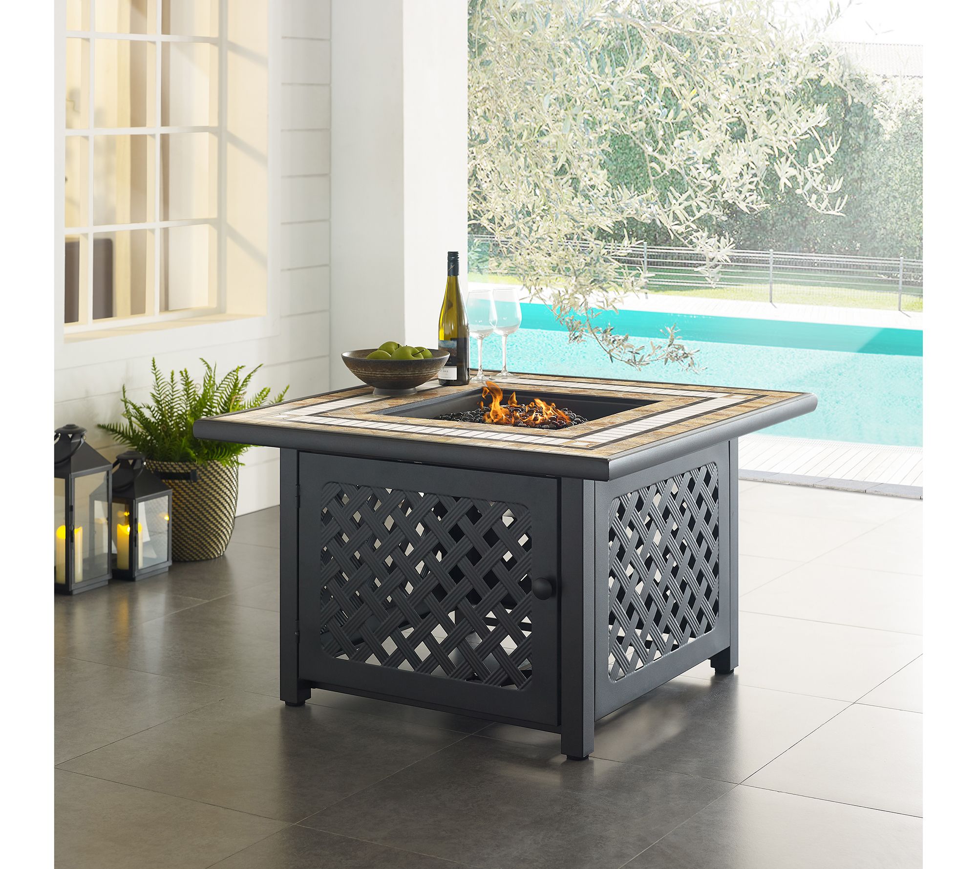 Gather around the Crosley Tucson outdoor fire pit table for a warm and inviting evening under the stars. This beautifully designed fire pit table features a weather-resistant steel frame and a tiled stone top, making it the perfect centerpiece for any outdoor seating area. From Crosley.