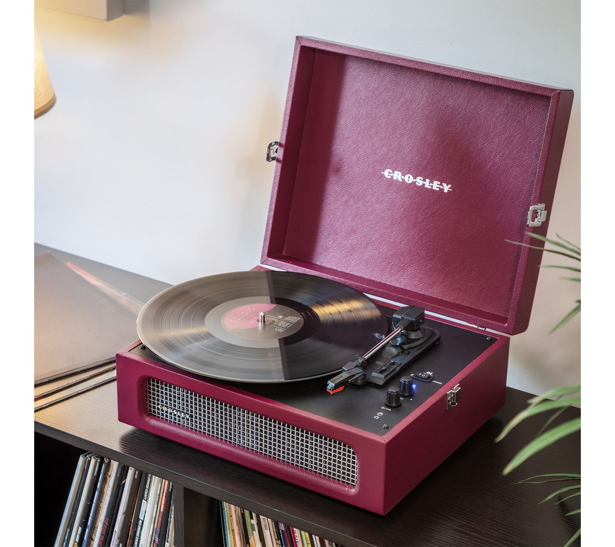 Turn lazy afternoons into lively listening sessions with the Crosley Voyager record player, where vintage records and modern playlists meet. Spin classic albums at three speeds or stream your favorite songs via Bluetooth, all amplified through built-in stereo speakers. This portable turntable brings music home wherever you want, letting you dial in every moment to suit your vibe. From Crosley.