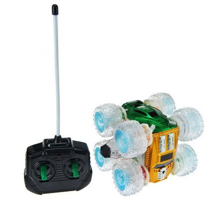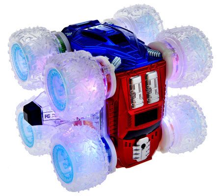 Action-packed entertainment! The Crossover eight-wheel stunt car performs fast, fun tricks. The easy-to-use remote puts your child in control, allowing them to make the car move forward, backward, left, and right. As well as perform flips, spins, and 360-degree movements. Further delighting your little one's senses are clear tires that let flashing LED lights shine through for a cooler-than-cool experience.
