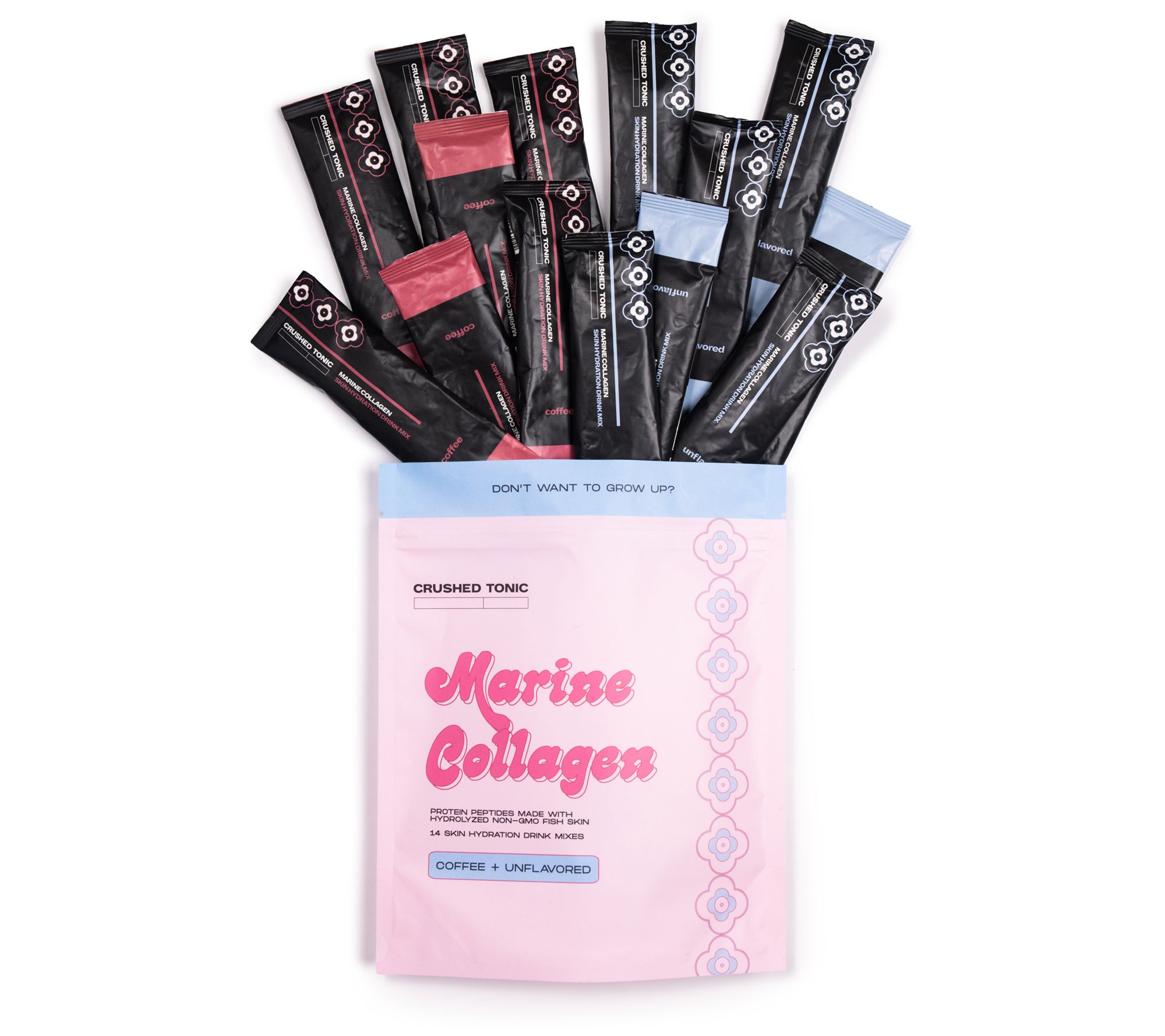 Supplement your nutritional needs (no matter where your day takes you!) with Crushed Tonic On the Go Marine Collagen. Enjoy the benefits of sustainably sourced marine collagen in a portable packaging that's easy to add to your routine. Marine collagen has been shown to improve skin hydration with daily intake, and may help to optimize skin's own natural collagen levels with continued use. Just combine with 1/3 cup of water and stir (or add to other flavored liquids, such as coffee, tea, smoothies, or soup). From Crushed Tonic.