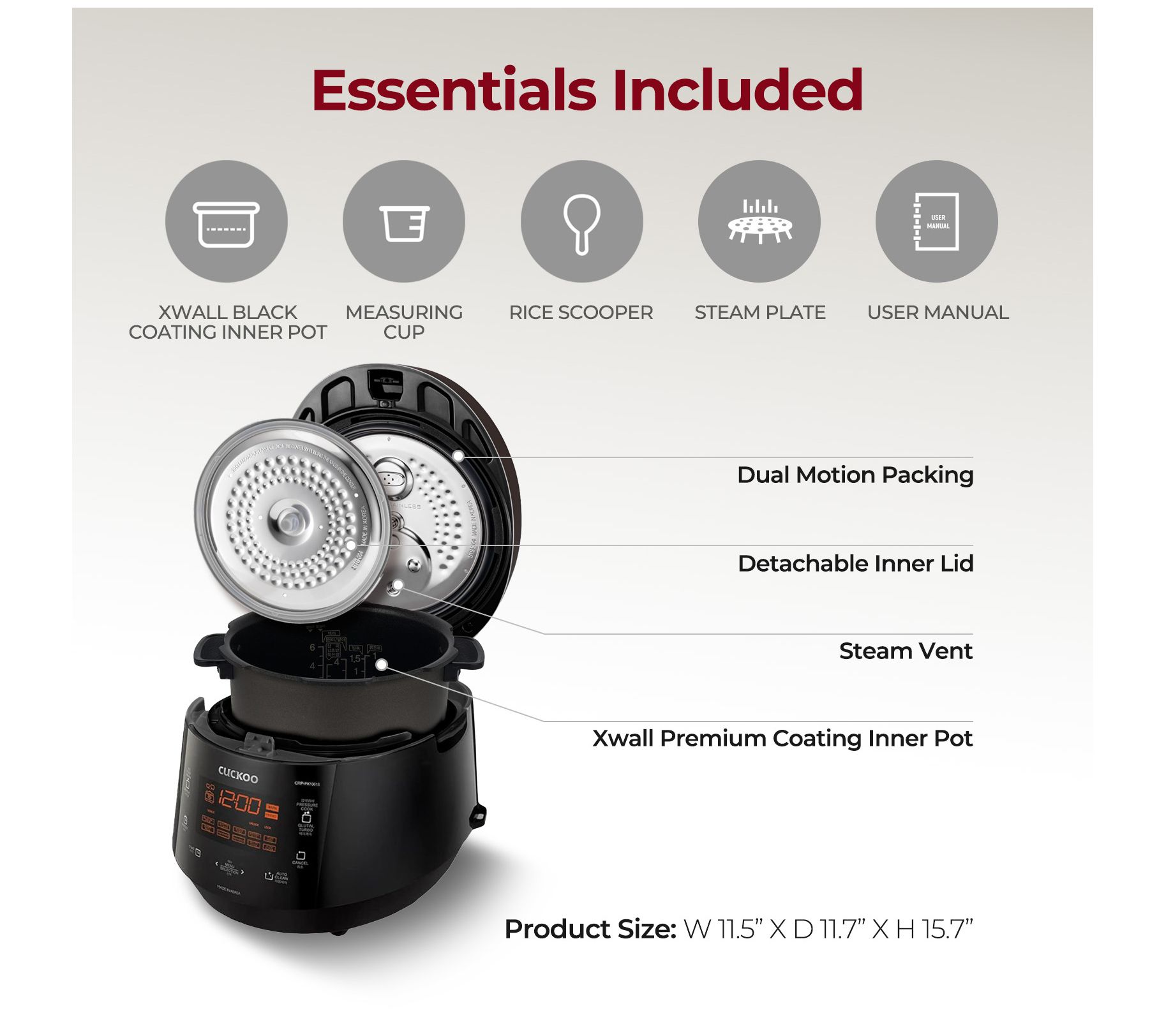 • Includes rice cooker, rice spatula, rice measuring cup, steam plate, and product manual