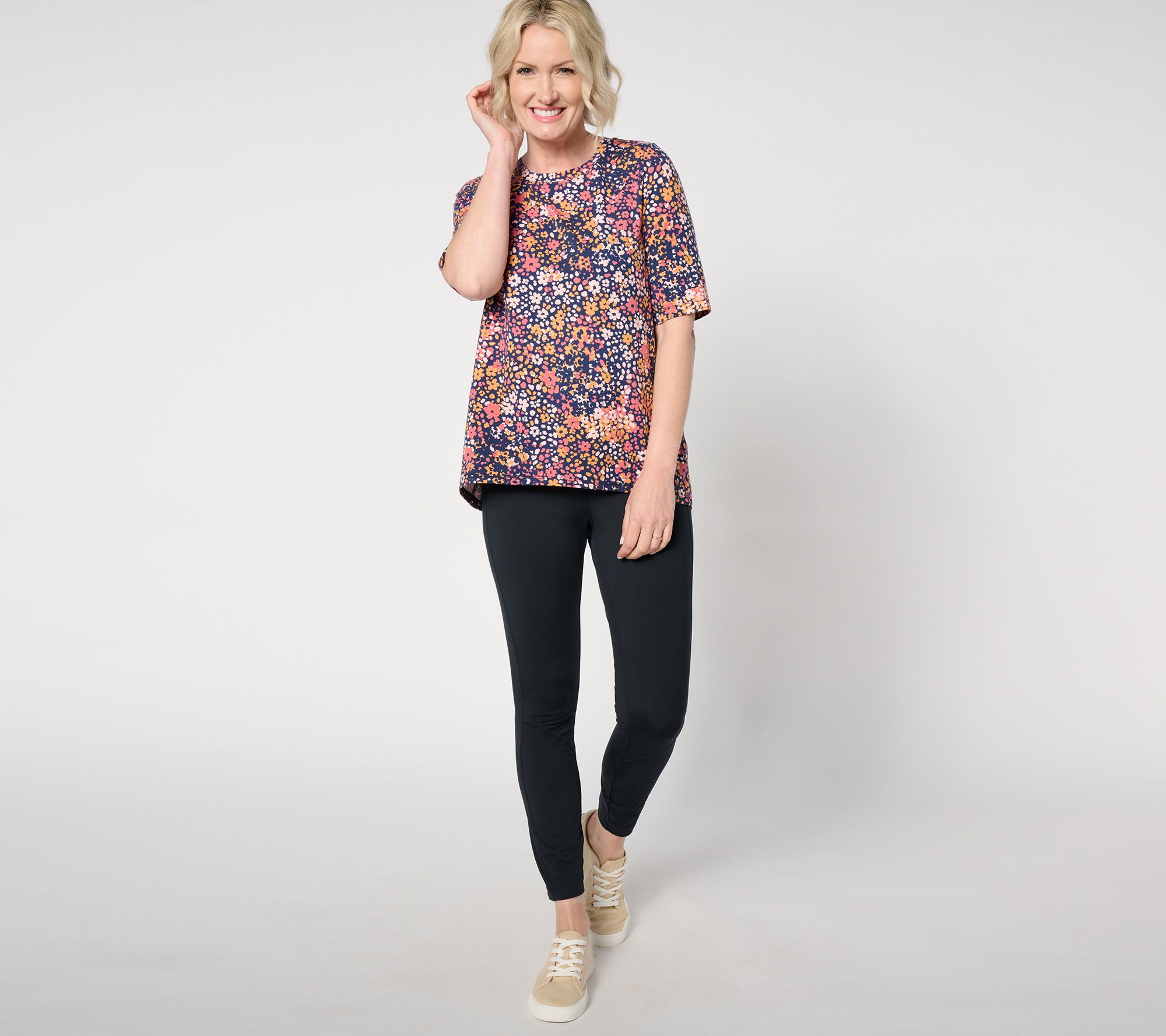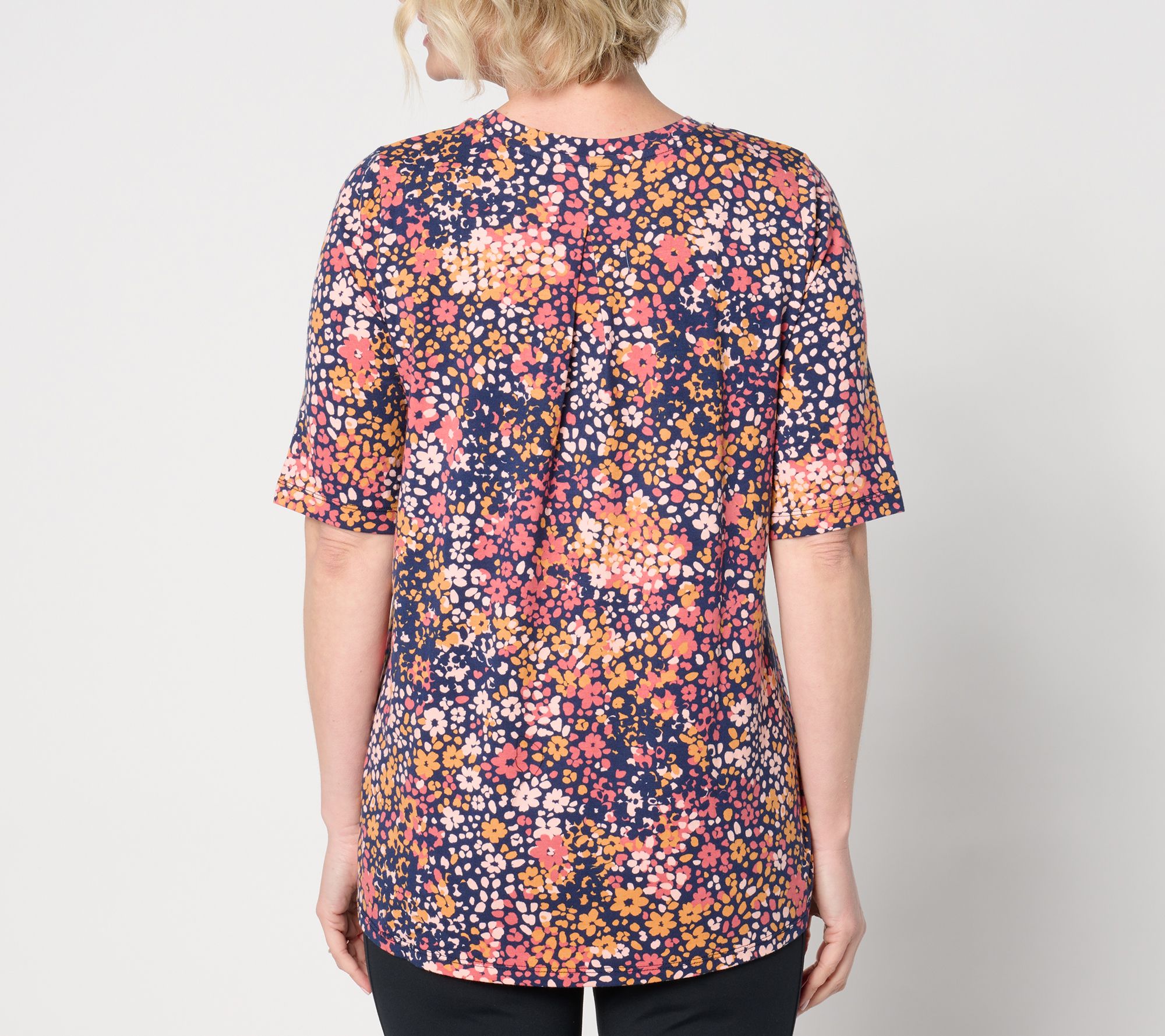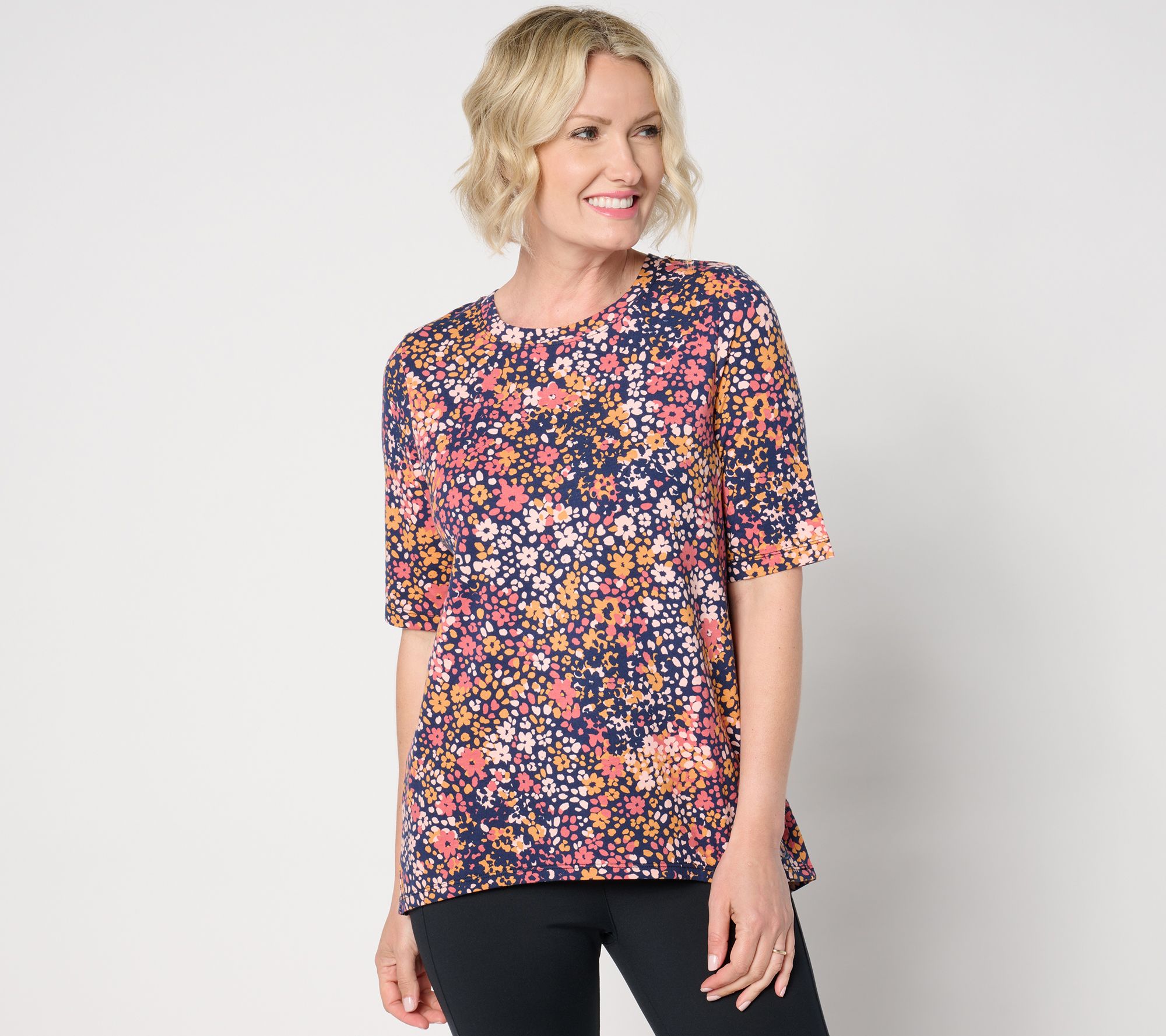A soft cotton blend for comfortable everyday wear. Ample stretch for flexibility. An easy fit with a relaxed box pleat in back. And elbow-length sleeves for four-season wearability. Think you've found the perfect tee? We do, too! From Cuddl Duds.