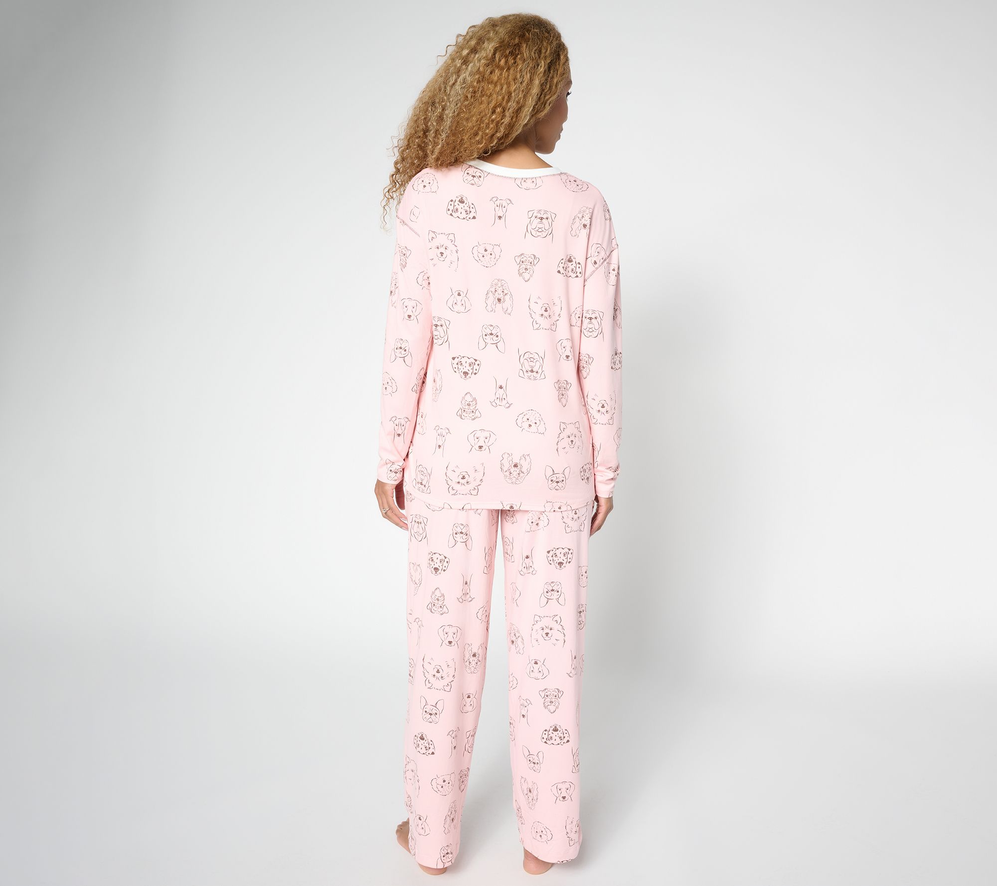Winding down after a busy day is even sweeter when you slip into this pajama set. The cozy jersey knit top and straight-leg pants feature a semi-fitted silhouette for easy movement whether you're enjoying a quiet morning or catching up on your favorite series. Details like drop-shoulder long sleeves and a drawstring waistband bring comfort to your nighttime routine. From Cuddl Duds.