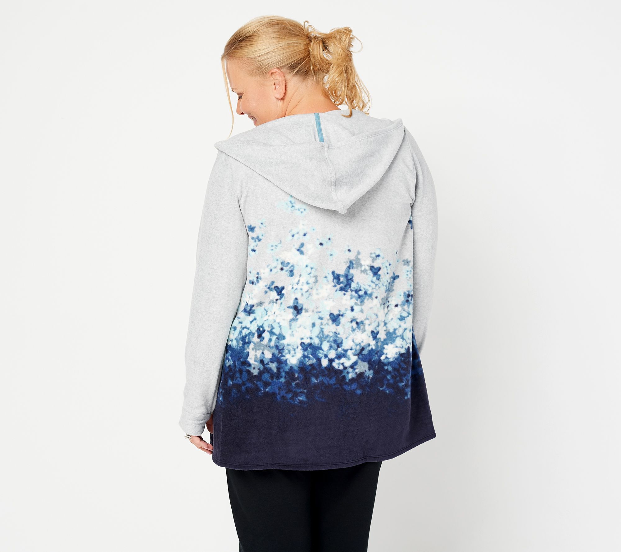 • Features: floral dip-dye design, hood, patch pockets, thumbholes