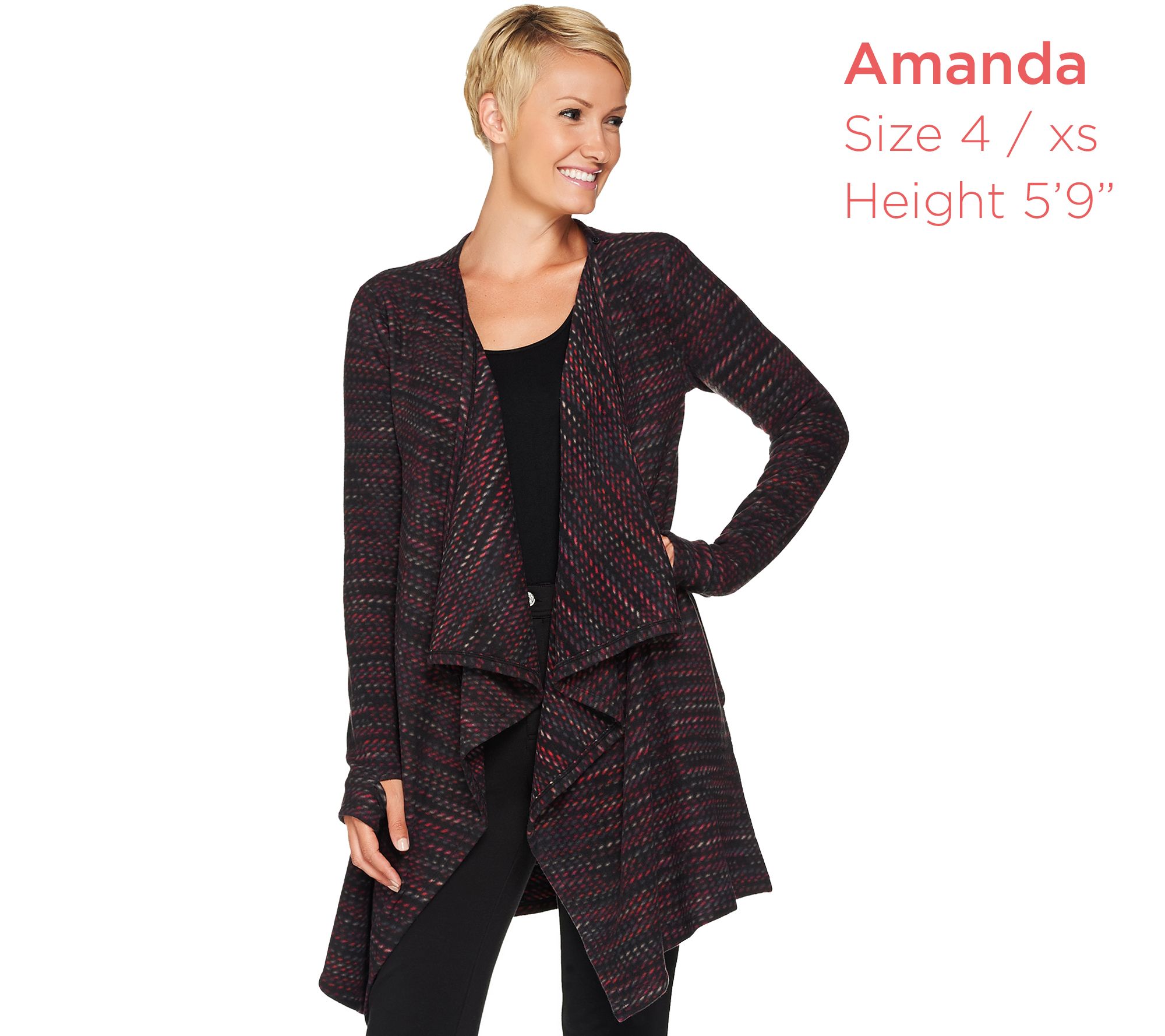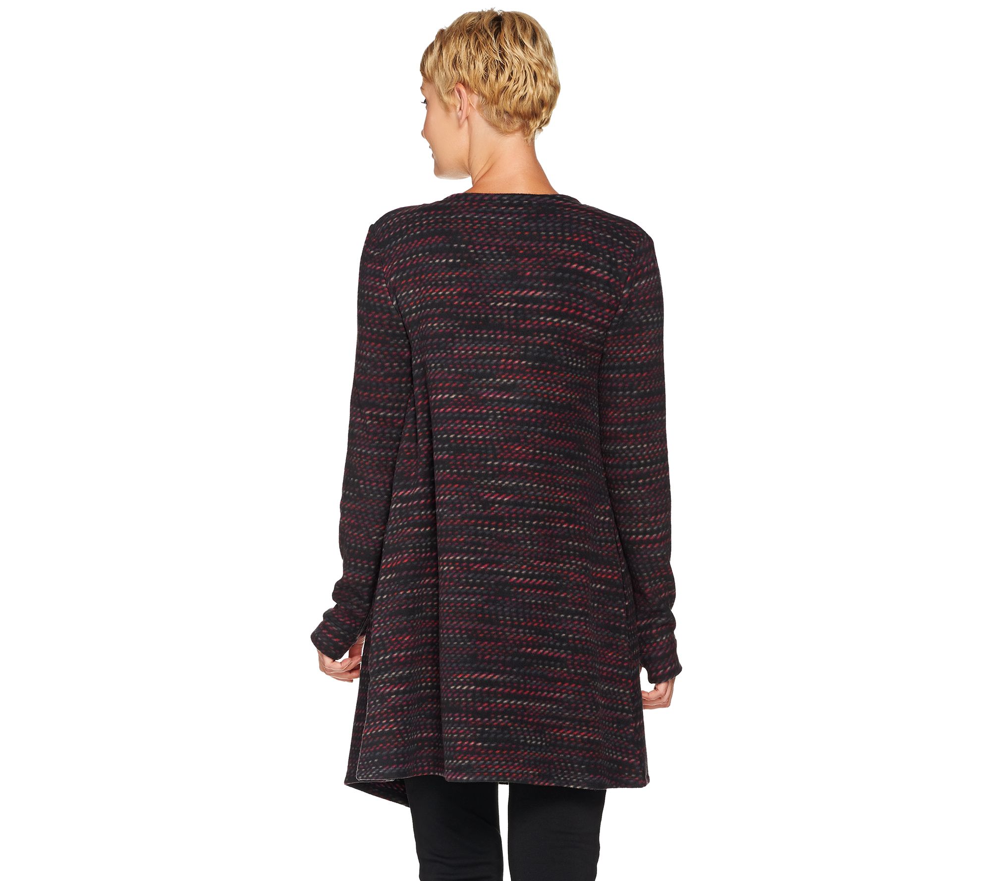 Just because you're cozy on the couch, doesn't mean you can't get up and go in this layer-ready Cuddl Duds wrap. The stretchy fleece design boasts a button closure to secure the cascading front, plus thumb holes to help stave off the chill. From Cuddl Duds.
