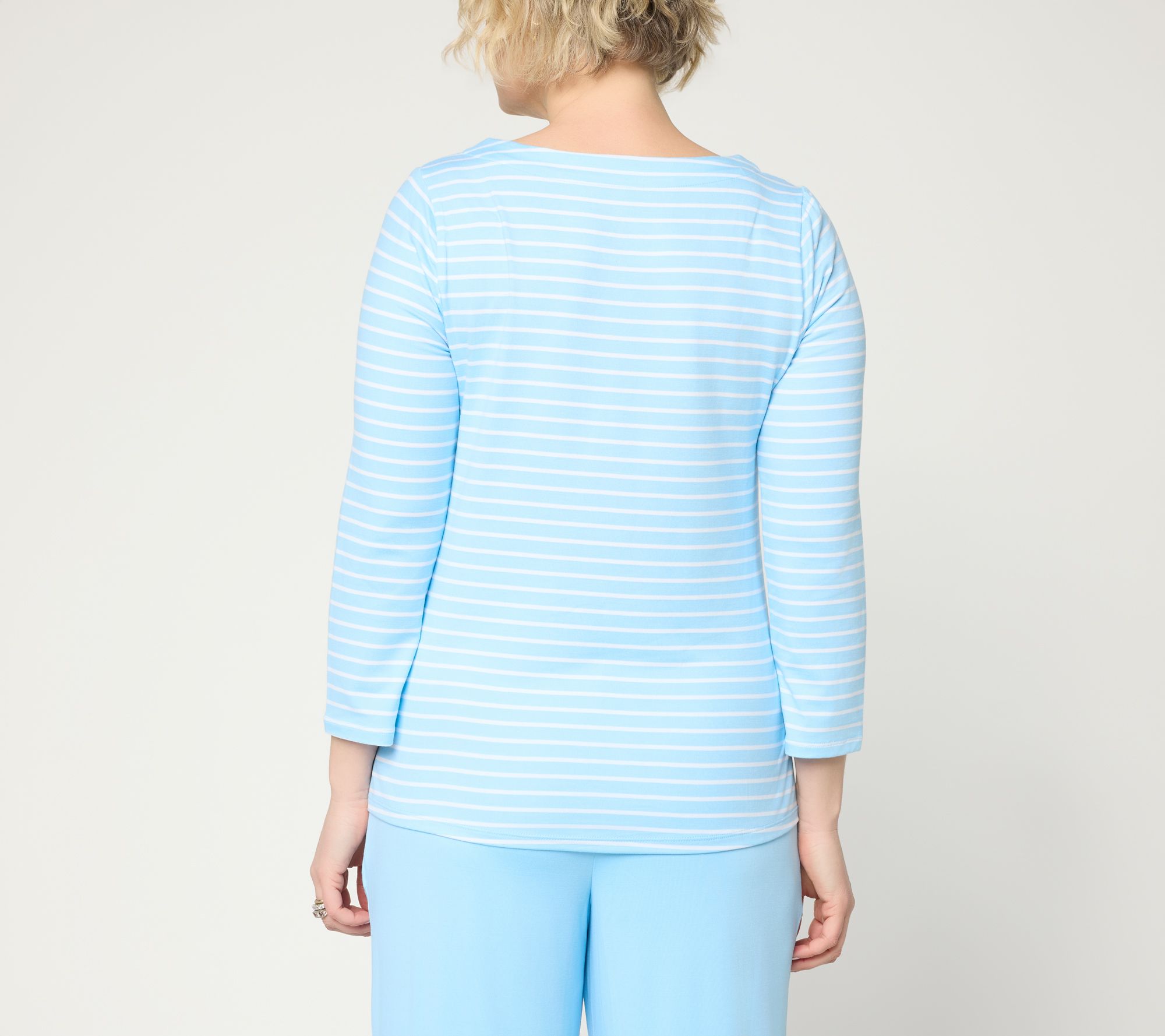 Early-morning errands or lunch dates with friends get a stylish upgrade in this Flexwear knit tee, where a scoop neckline with drawcord lacing delivers a fresh fashion moment. The multi-season sleeves and curved hem create easy movement and relaxed appeal, ideal for pairing with your favorite jeans or leggings any day of the week (or year). From Cuddl Duds.