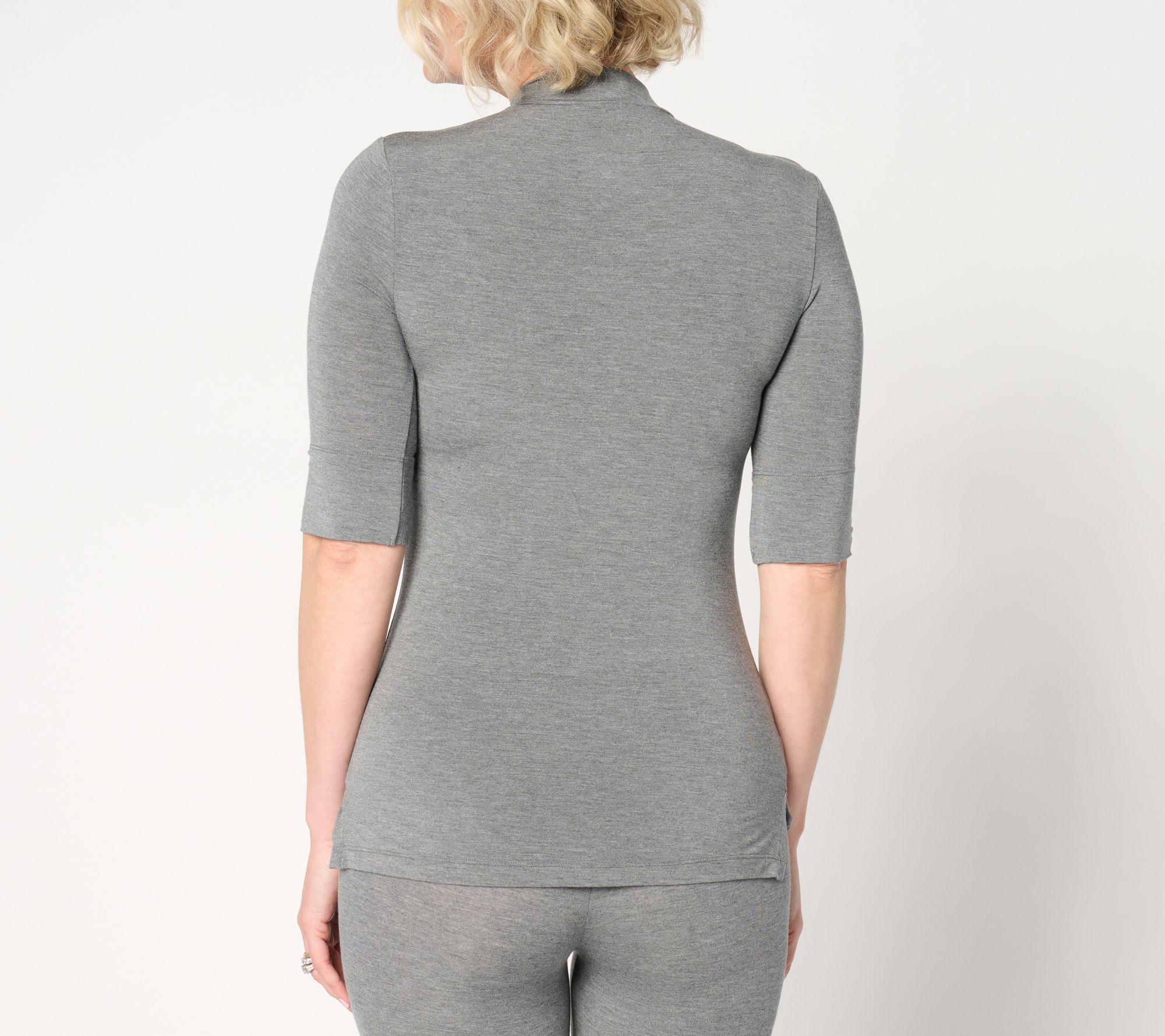 And stretch! Modal with a helping of spandex supplies this layerable mock neck tee a smooth fit and polished couch-to-cafe versatility. From Cuddl Duds.