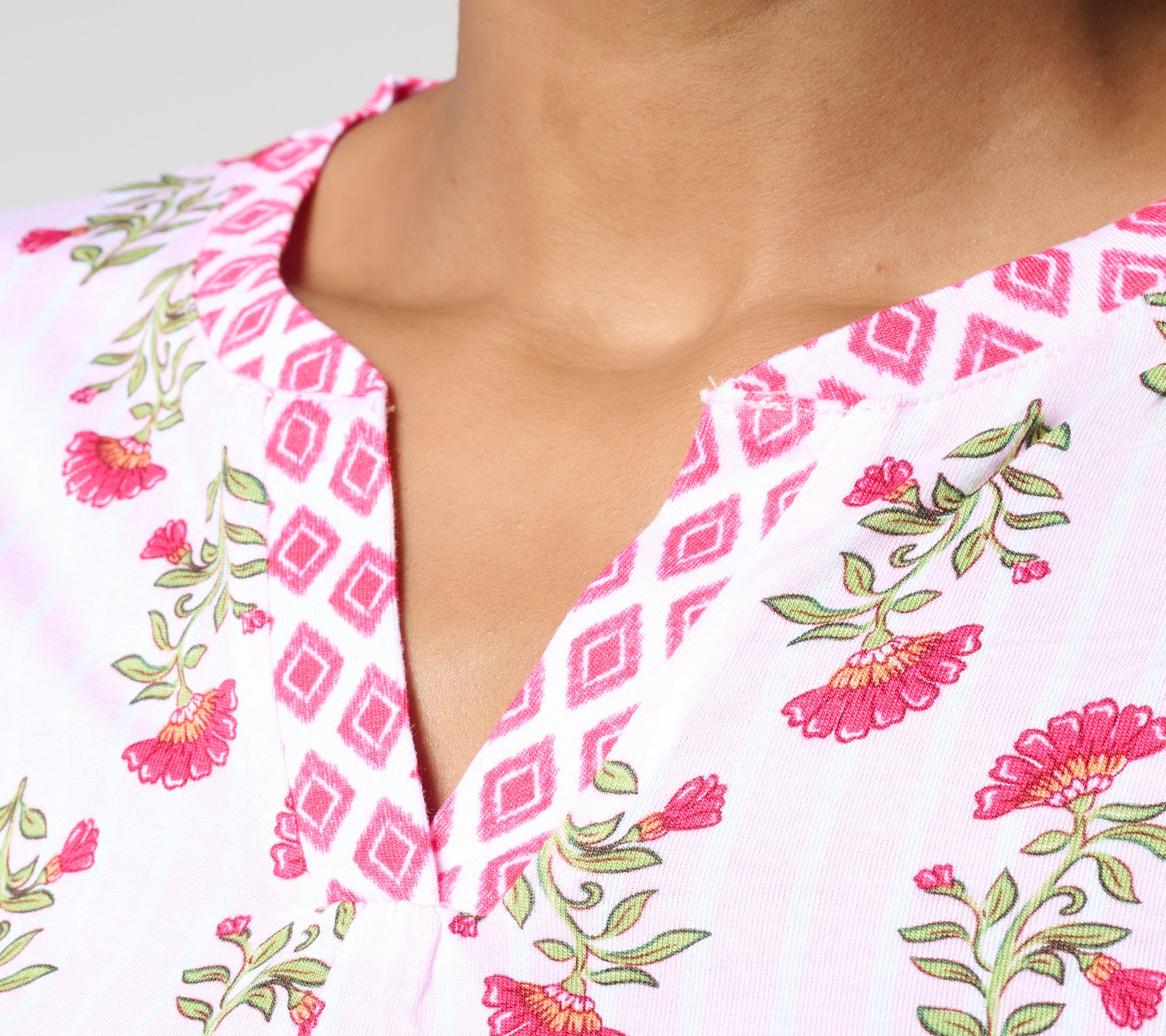 Late-night lounging or early-morning routines feel a little more comfy in this dreamy pajama set. Smooth knit jersey with easygoing stretch and a never-tight fit brings all-night wearability (without PJ tangles!). Just pair with slippers and your favorite mug for a cozy night in. From Cuddl Duds.