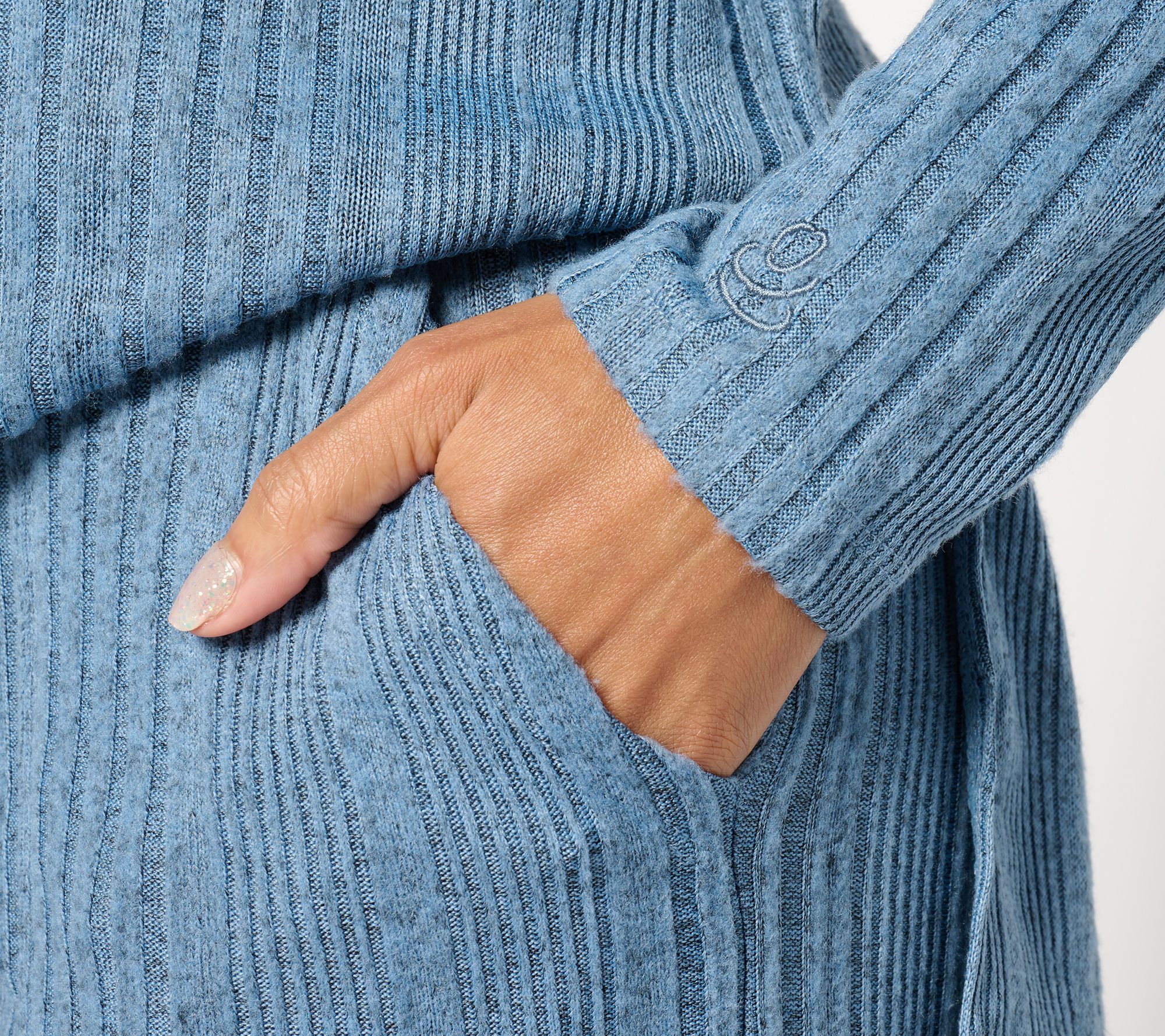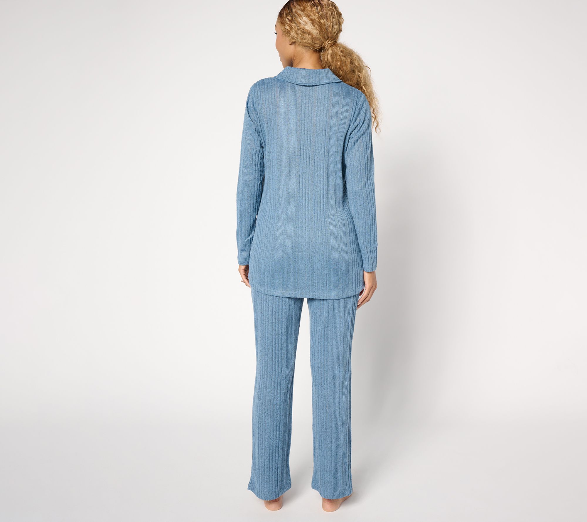 Prioritize your comfort, play up your style. This Cuddl Duds Comfort Rib set ushers in a more elegant era of loungewear, with its variegated ribbing, button front, and trend-smart straight leg. You'll be equally as likely to slip into the cardi and pants pairing for a lunch date with your girlfriend at that cute new cafe as you would a Saturday of self-care or an evening of hosting. And for WFH video meets, it mixes business and coffee-dash pleasure like a boss -- with the option for a power nap! Nothing too tight, nothing too loose -- just a polished two-piece that takes all the work out of being comfortably, sophisticatedly coordinated. From Cuddl Duds.