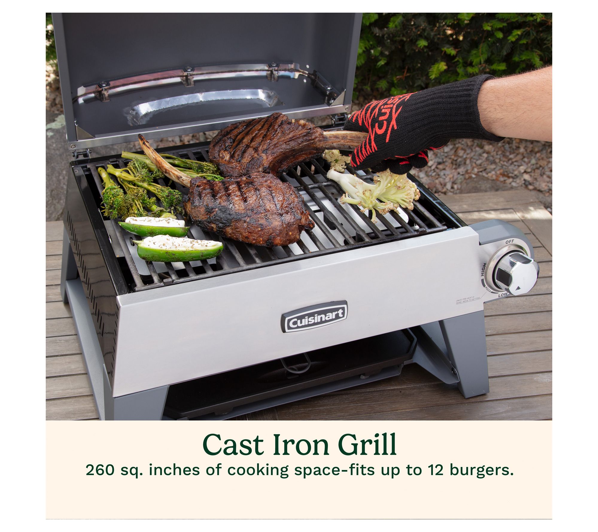 • Grill delivers up to 260 sq. in. of cooking space and 15,000 BTU burner