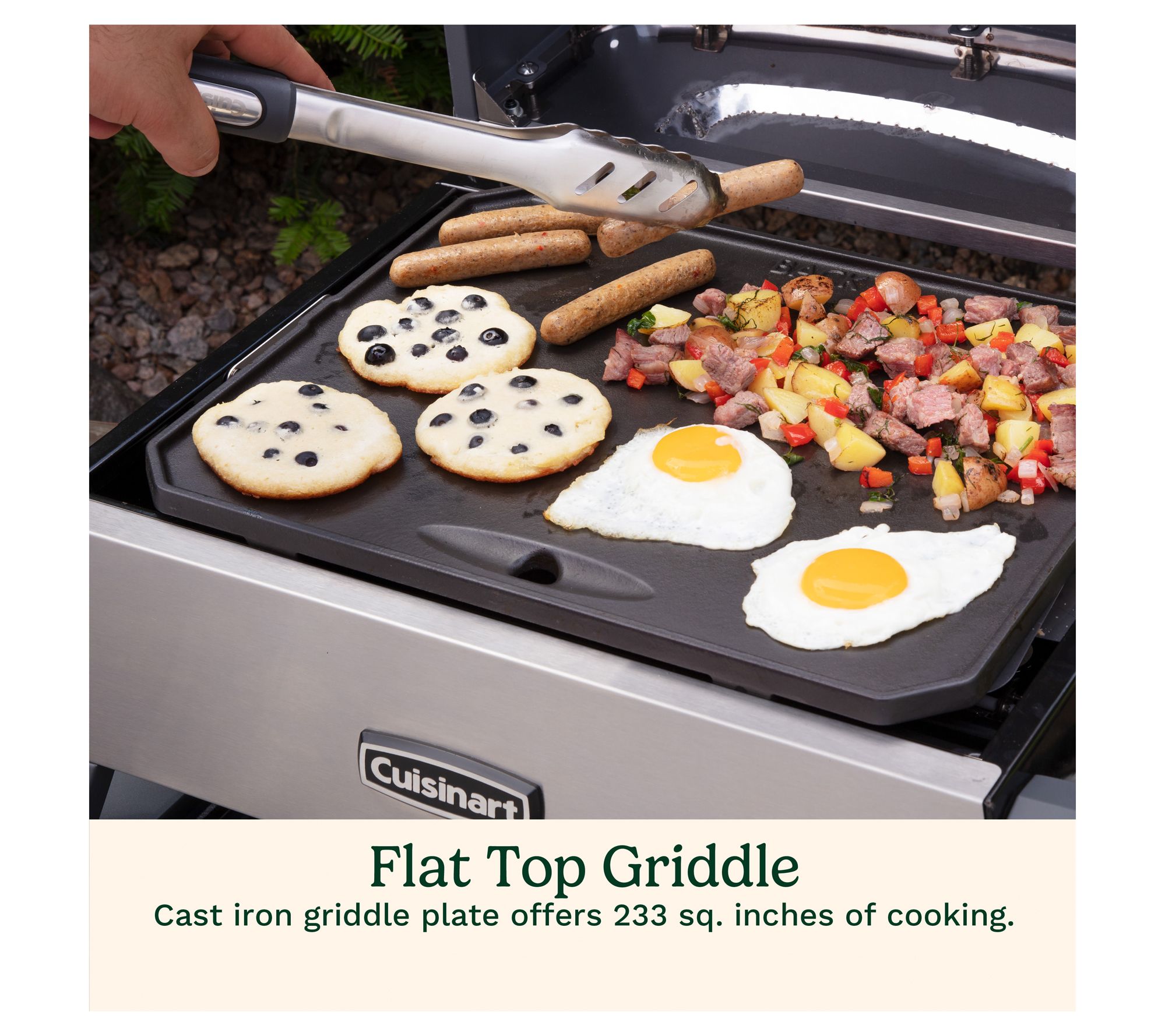 • Griddle plate offers up to 230 sq. in. of cooking space