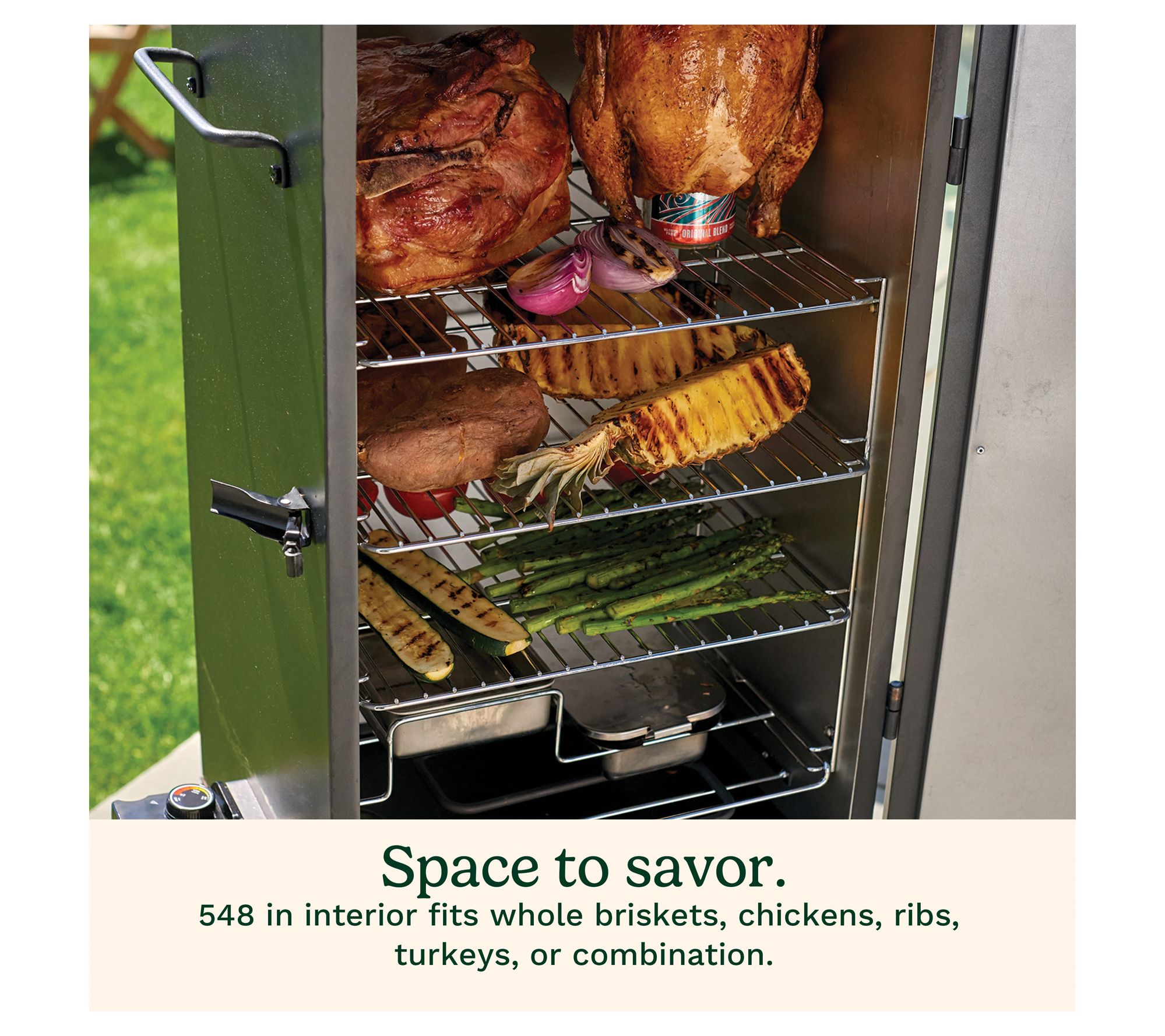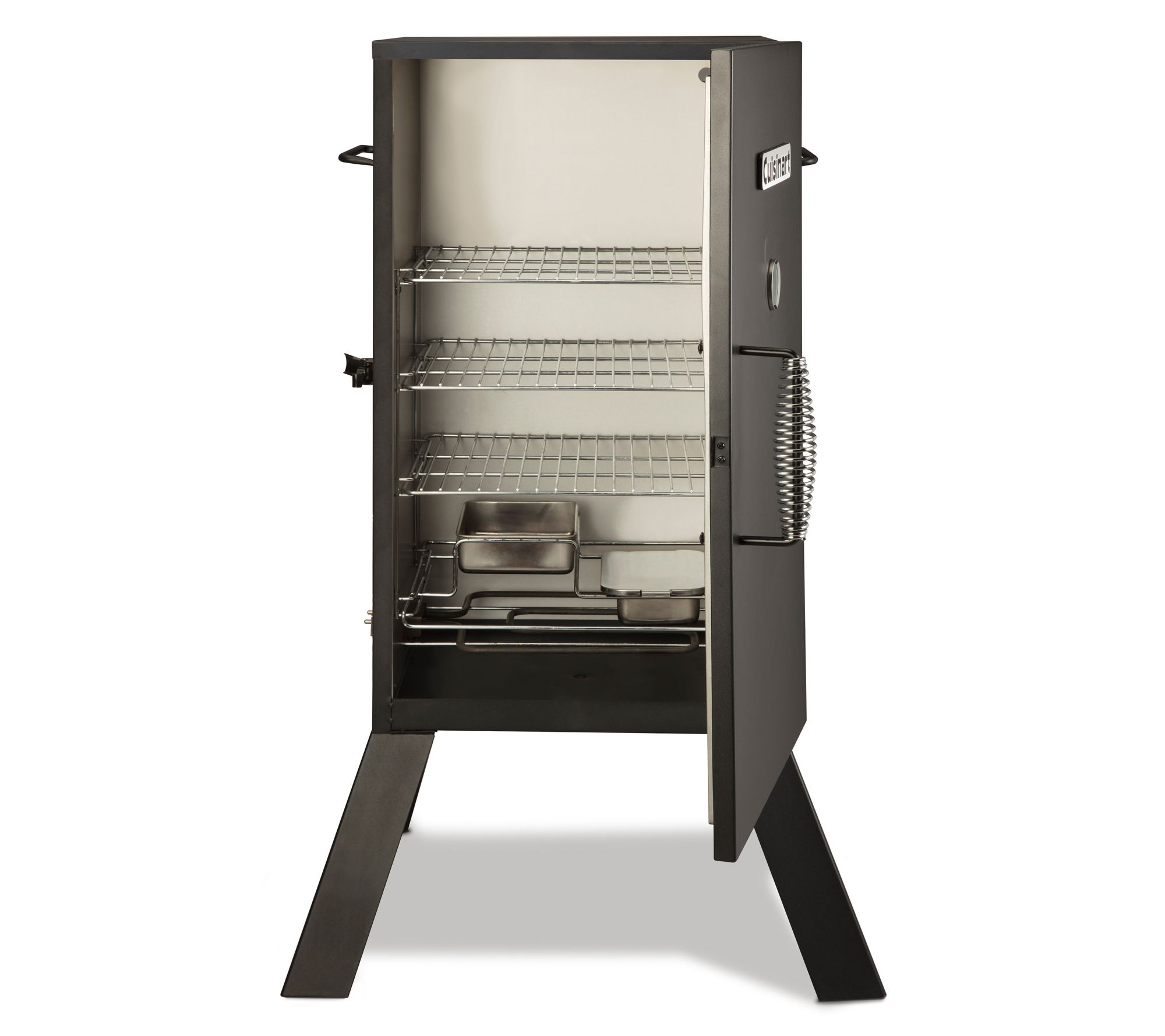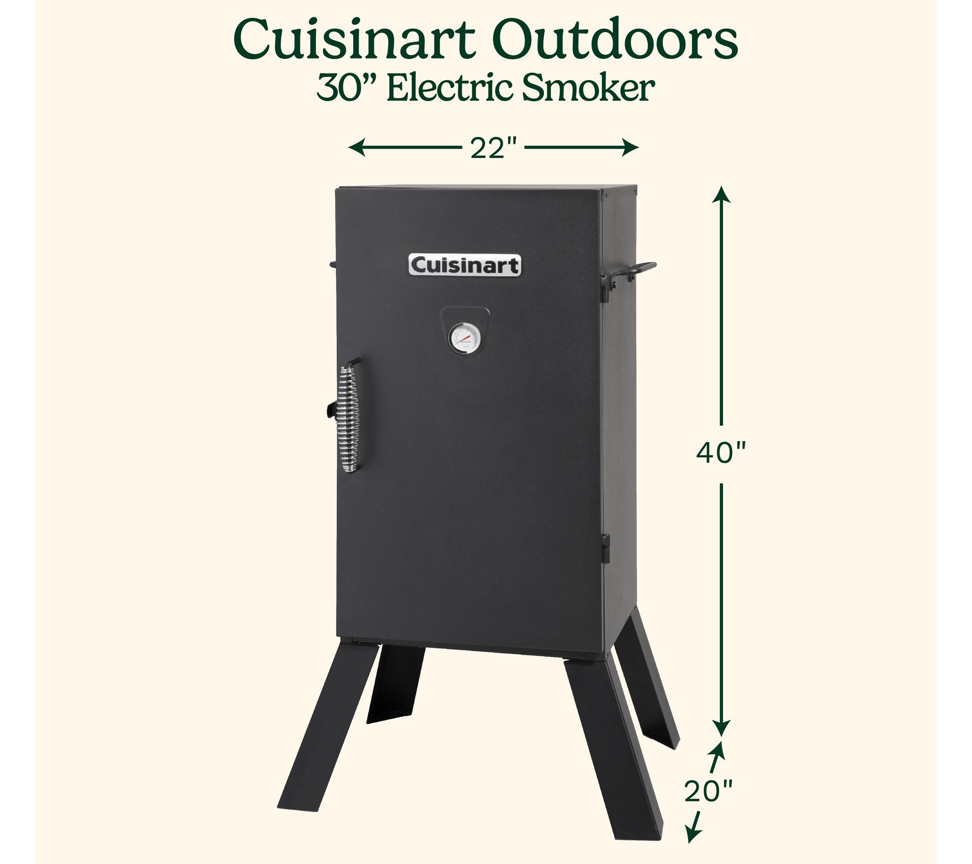 Smoking brisket for a weekend cookout or preparing savory sides is simple with this electric vertical smoker. The spacious interior with three chrome-coated racks gives you room to smoke meats, fish, or vegetables for a crowd, while adjustable temperature controls and auto shut off let you relax and enjoy the process. From Cuisinart.