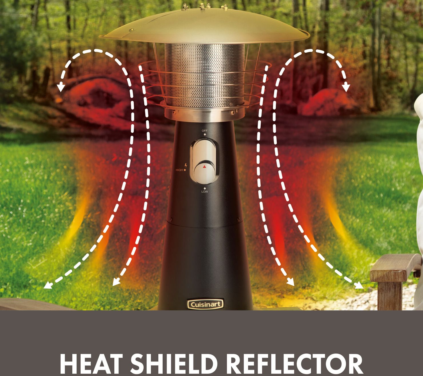 Place this portable heater in the center of your patio table for warmth while you dine with friends and family, keeping you and your guests cozy while the night settles in. Lightweight and small, this heater can easily be taken anywhere you need a little extra warmth, like the campground and tailgating. From Cuisinart.