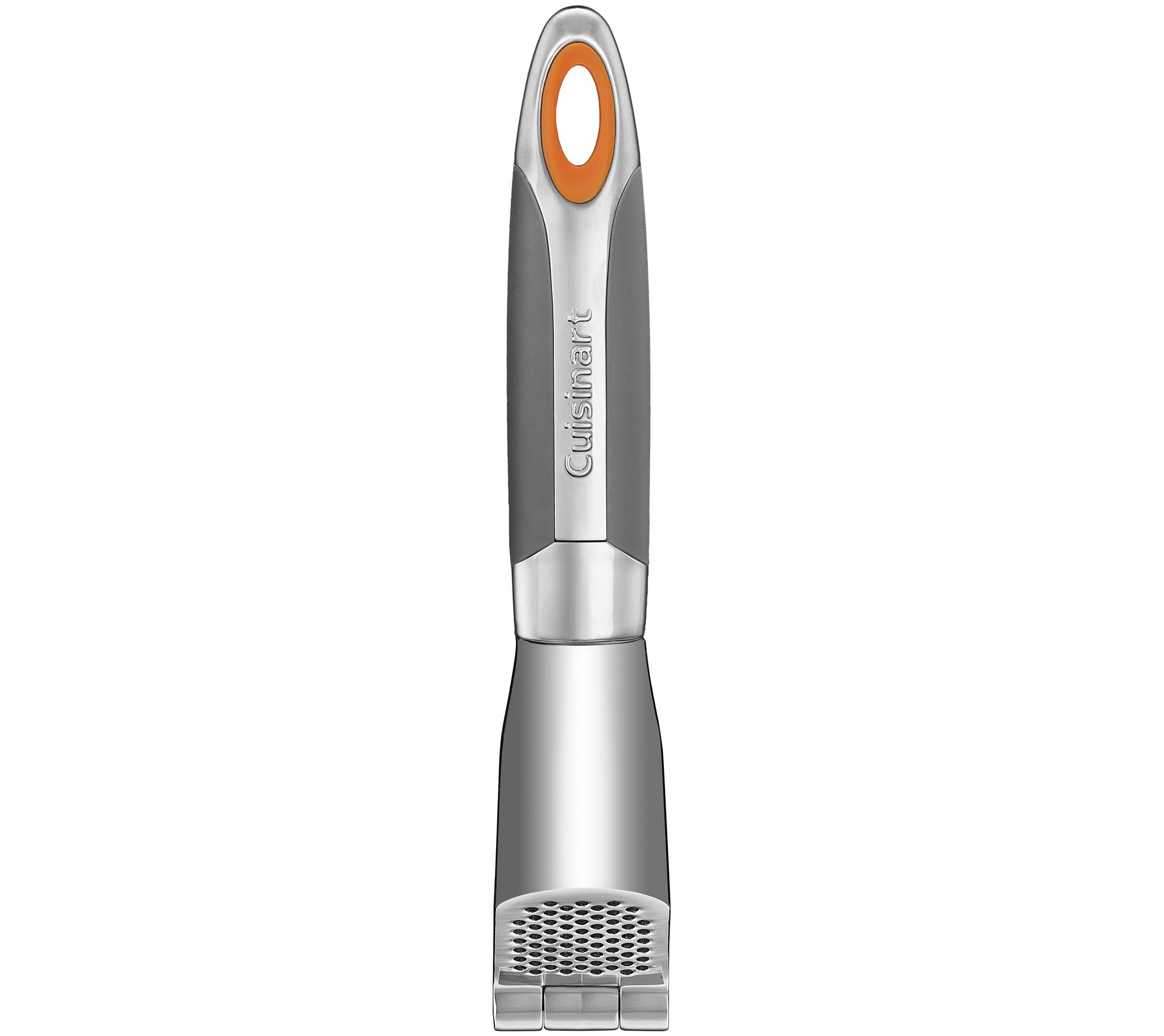 Im-pressed! Durable, easy to handle, and dishwasher-safe, this self-cleaning Cuisinart garlic press provides you with fast and fresh food prep for making mojo sauces, scampis, and more. The sleek Italian styling, gleaming stainless steel, and orange accent will make you wonder if it's for mincing garlic or making a fashion statement. From Cuisinart.