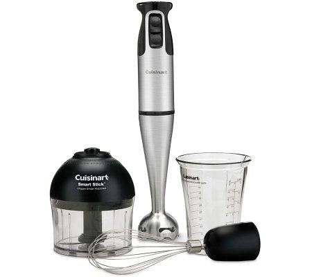 Includes CSB-79 Smart Stick hand blender, blending attachment with stainless steel blade and blade guard, whisk attachment, chopper attachment with work bowl, 16-oz mixing beaker, and recipe book