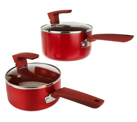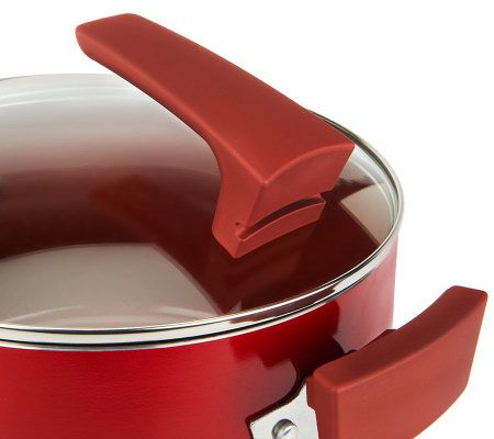 Now you're cooking! Whip up sauces and stews, saute veggies, and cook just about anything with this smart cookware set. The PFOA- and PTFE-free cooking surfaces are nonstick, and the shatter-resistant glass lids allow you to watch as foods cook; you can even sit lids upright on the counter as you work. Soft-touch, silicone-wrapped handles make pans cool and comfortable to grab. From Culinary Gourmet.