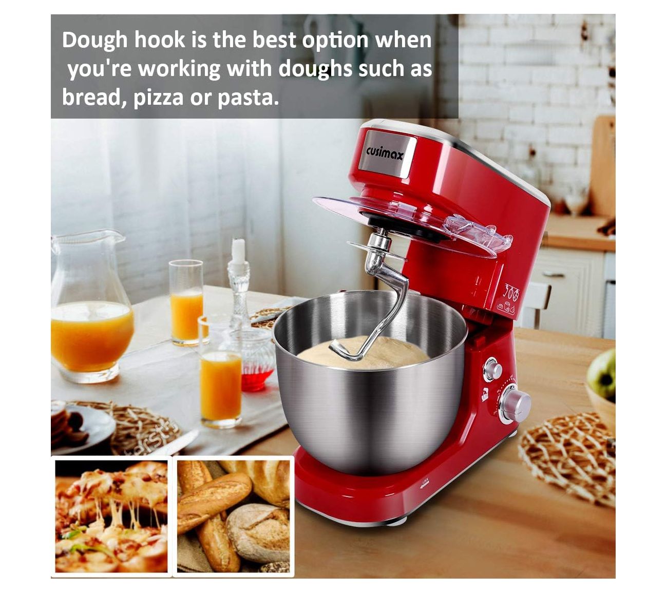 This CUSIMAX stand mixer makes baking for your family a breeze with its large 5-quart stainless steel bowl. Designed for easy cleanup, its tilt-head feature lets you quickly install or uninstall the bowl and accessories. Enjoy evenly mixed results thanks to the planetary mixing action. From CUSIMAX.