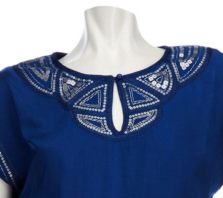 Embellished style. Pretty and modern, this drawstring tunic with dolman sleeves and sequin embellishments dresses up your favorite pants and skirts. From CV by Cynthia Vincent.
