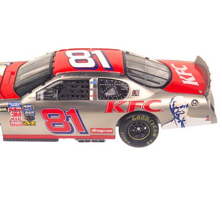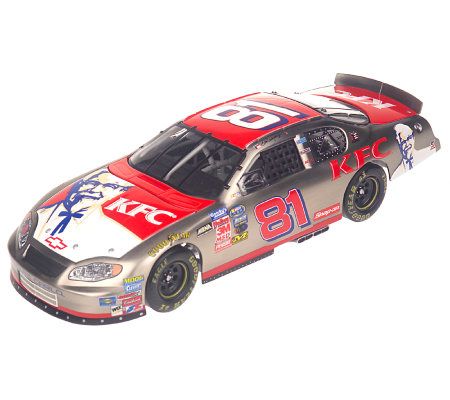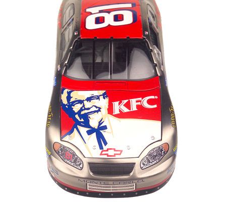 Dale Earnhardt Jr. is hungry! Meet him at KFC and speed through the drive-thru in this 1:24 scale Kentucky Fried Chicken 2004 Chevrolet Brushed Metal Car. Little E will race the special #81 car in the Busch Series at Daytona on July 2, 2004.