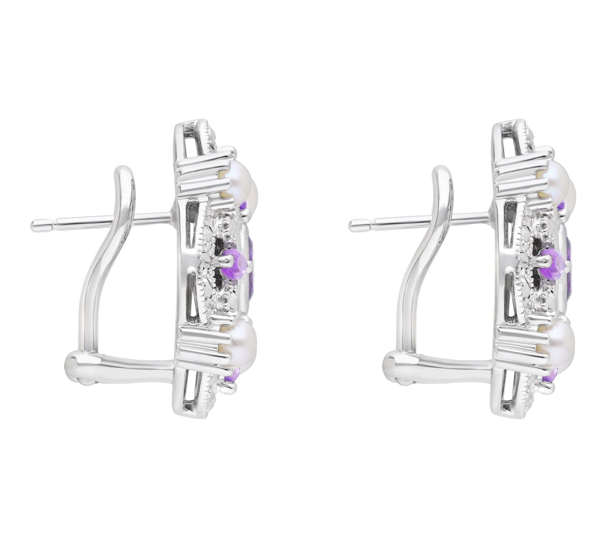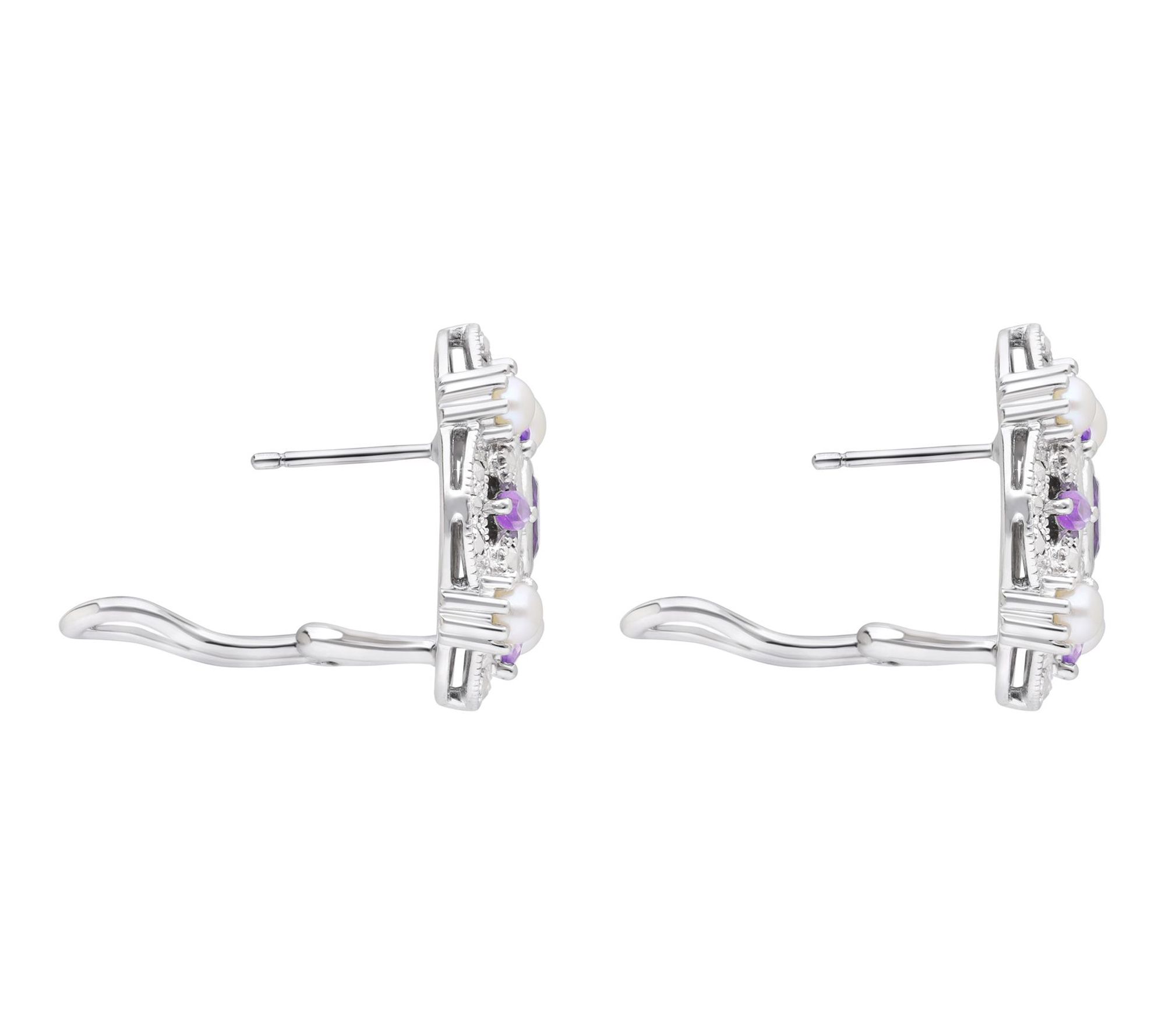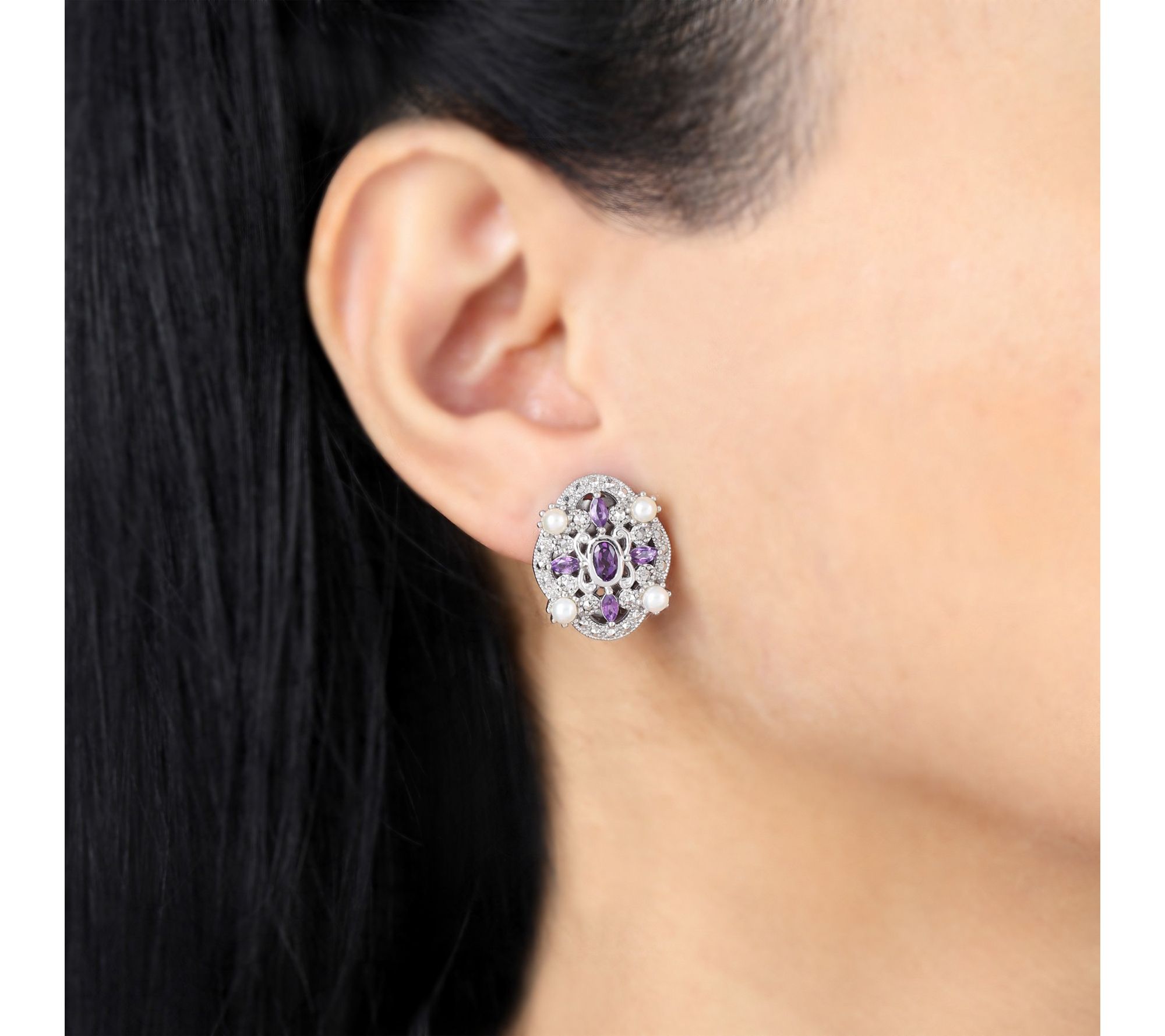 Let the romance and elegance of Victorian-era jewelry add a touch of sophistication to your look with these stunning button earrings. Shimmering amethyst gemstones and cultured freshwater pearls create a timeless harmony, while marcasite accents evoke the era's symbolic meanings of purity and protection. An exquisite addition for special occasions or everyday elegance. From Dallas Prince Designs.