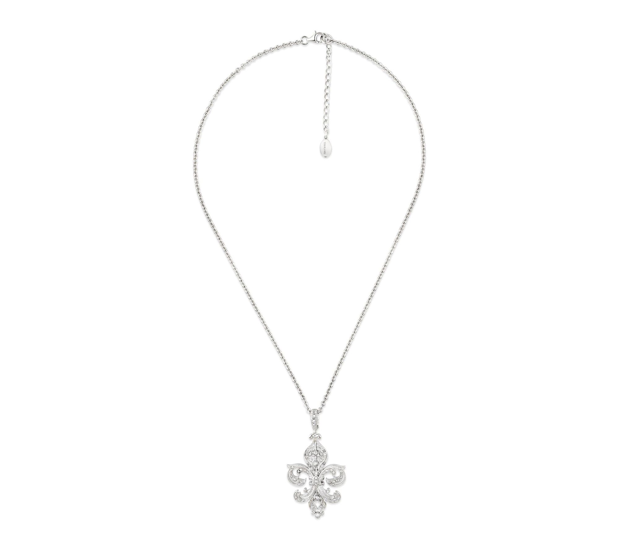 Make a bold statement at your next special event or dinner with this striking fleur-de-lis necklace. Inspired by French symbolism, the pendant sparkles with chrome marcasite gemstones, adding a touch of heritage and elegance to any outfit. The versatile chain with extender lets you customize your look with ease. From Dallas Prince.