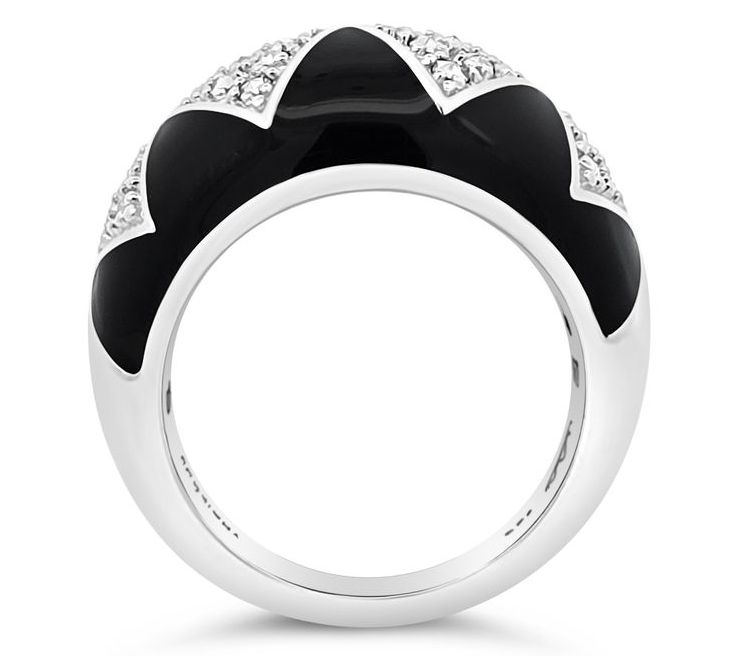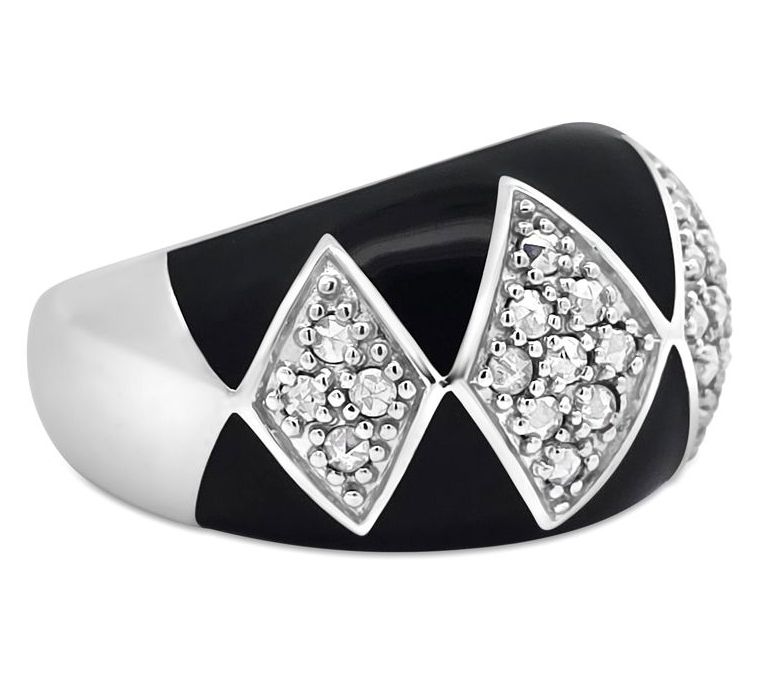 Channel the elegance of the art deco era every day with this sterling silver ring. Adorned with black enamel and diamond-shaped pave-set chrome marcasite, it offers a captivating and sophisticated design that makes any occasion special. From Dallas Prince.