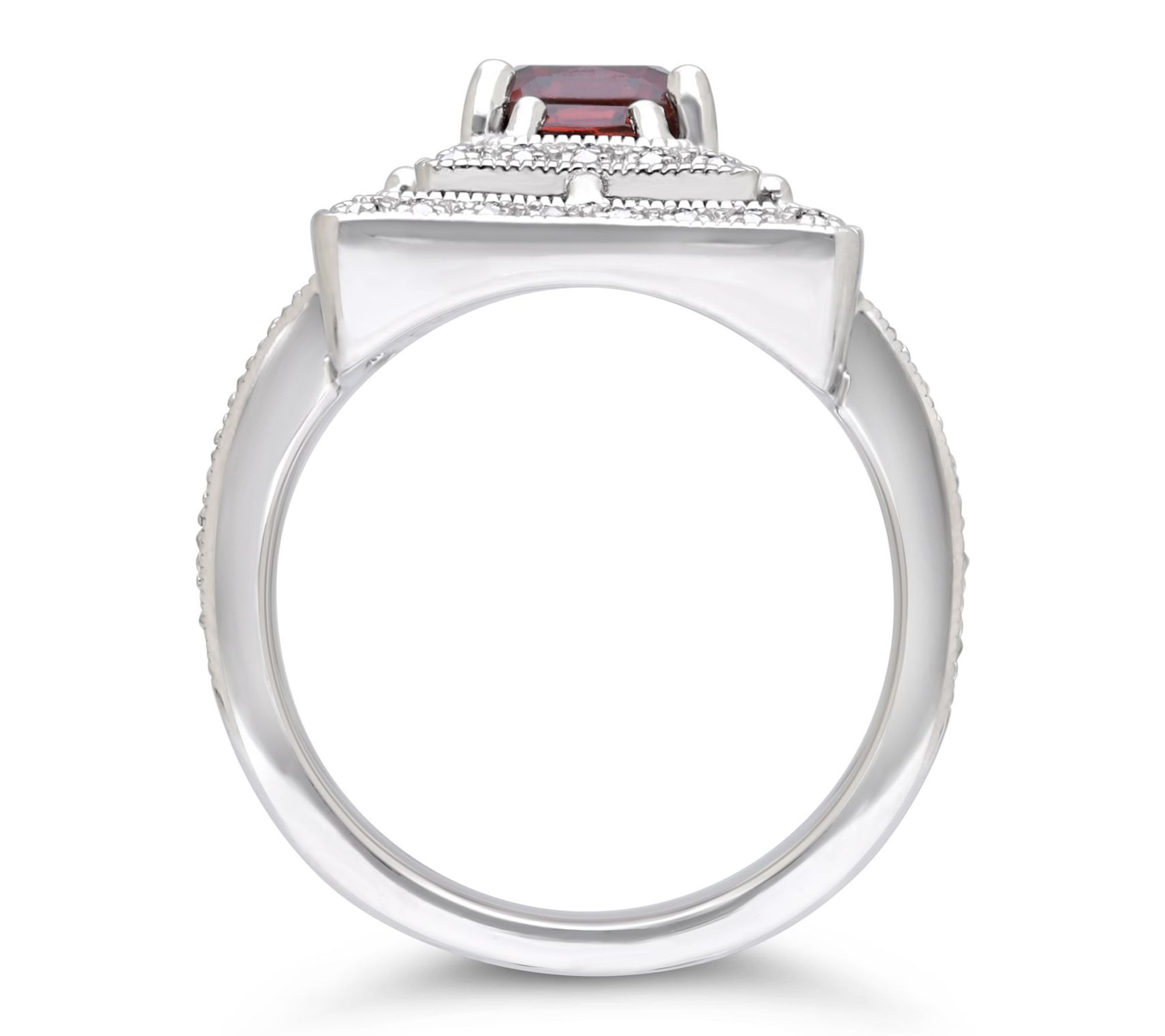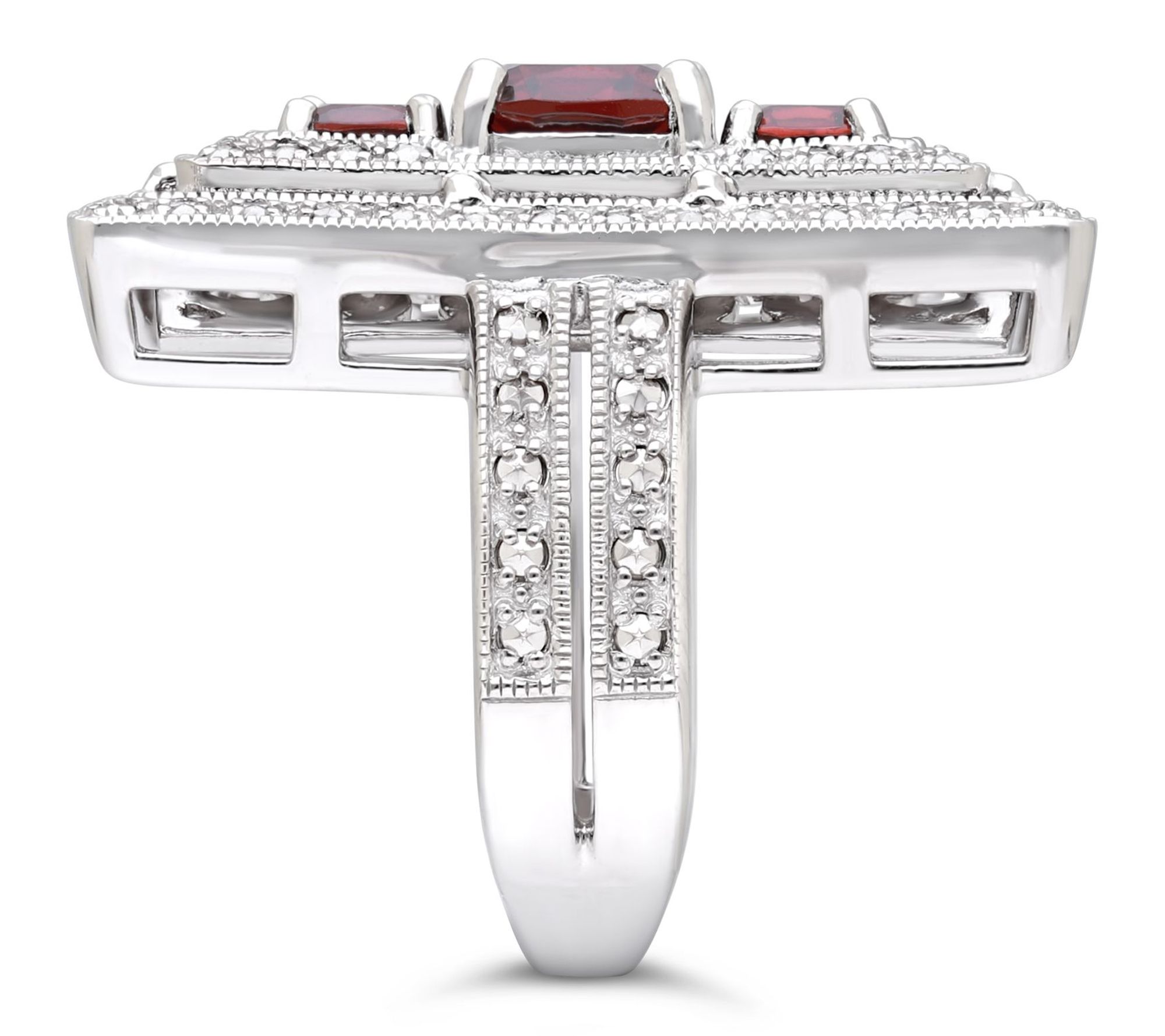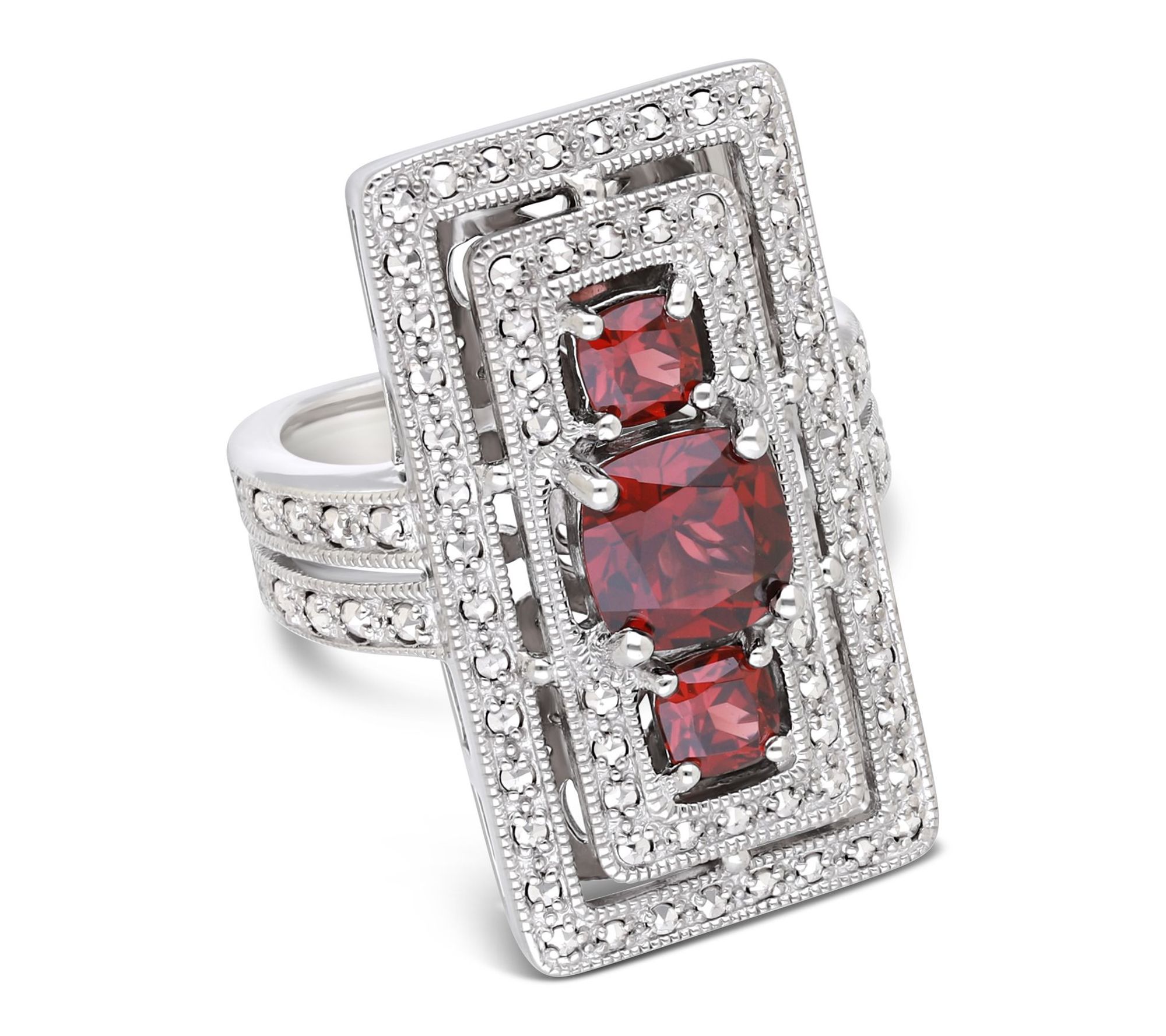 Slip on this bold ring for a touch of style--its striking garnet center, detailed with sparkling marcasite stones, brings elevated elegance to everything from cocktail attire to weekend denim. Polished sterling silver and deco-inspired craftsmanship ensure you catch the light -- and compliments -- wherever you go. From Dallas Prince.