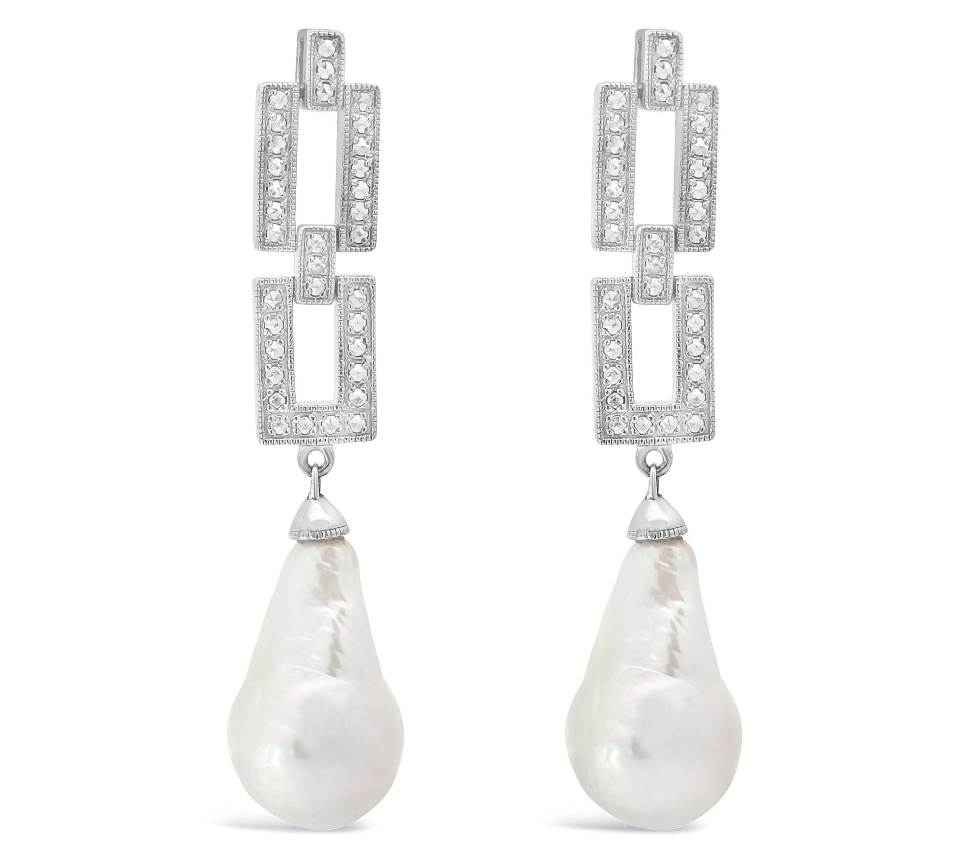 Dress up your day or night with the artful shine of chrome marcasite links and the vivid luster of baroque cultured freshwater pearls. The graceful drop design draws the eye, making these earrings an elegant choice for events or a chic uplift for casual moments. From Dallas Prince.