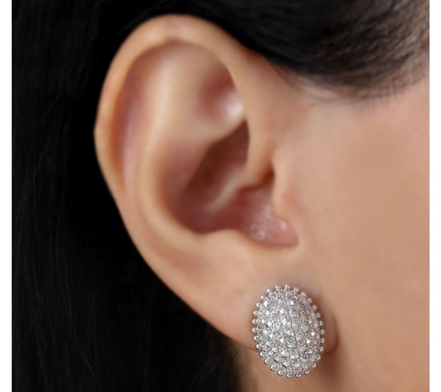 It's easy to make every moment feel just a little more special when chrome marcasite studs light up your look. Whether you're dressing up for dinner or adding a hint of brilliance to your workday, the pave-set stones shimmer against sterling silver with a delicate beaded frame for timeless character. From Dallas Prince.
