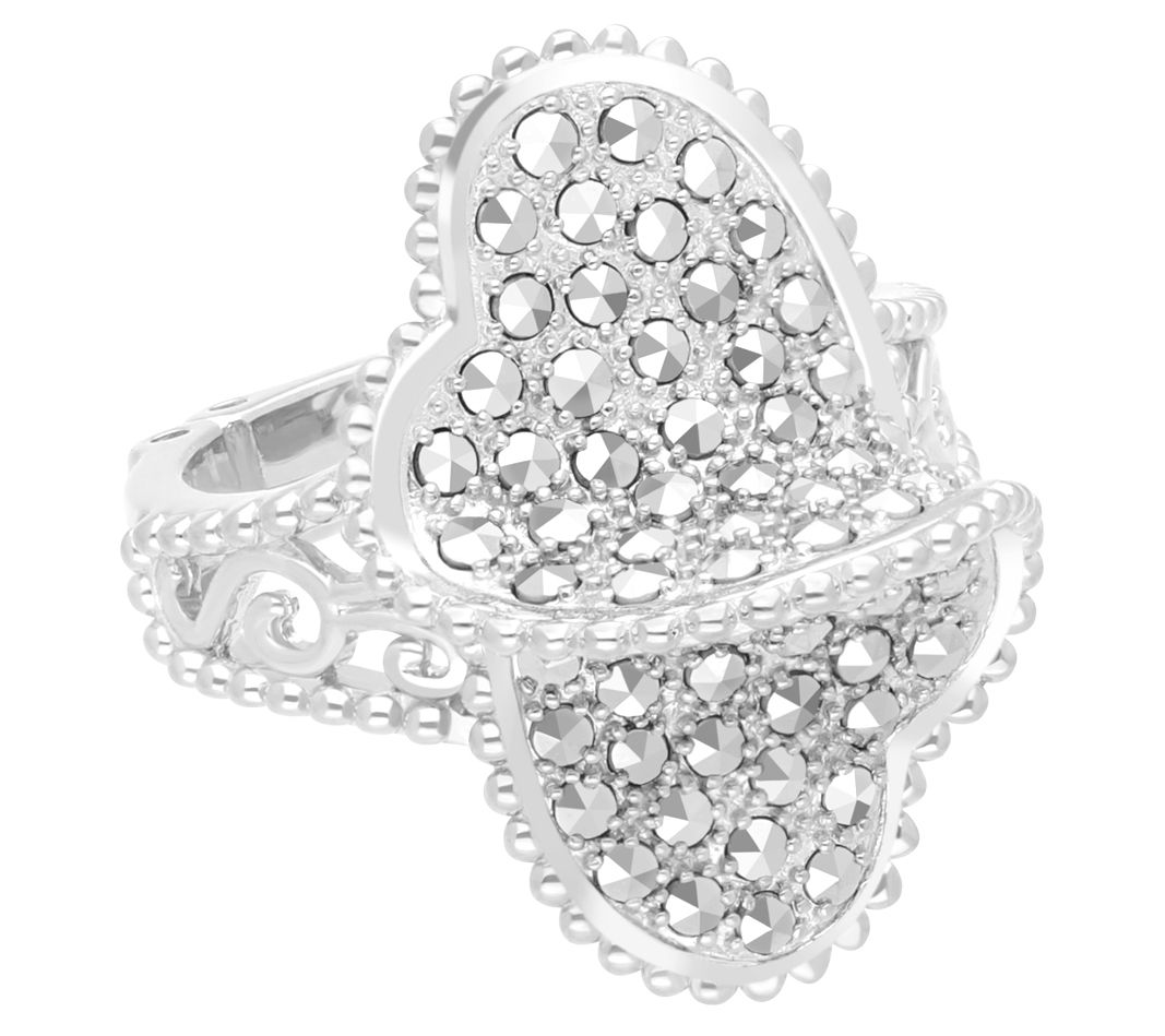 Dallas Prince Sterling Chrome Marcasite Unity Heart Ring