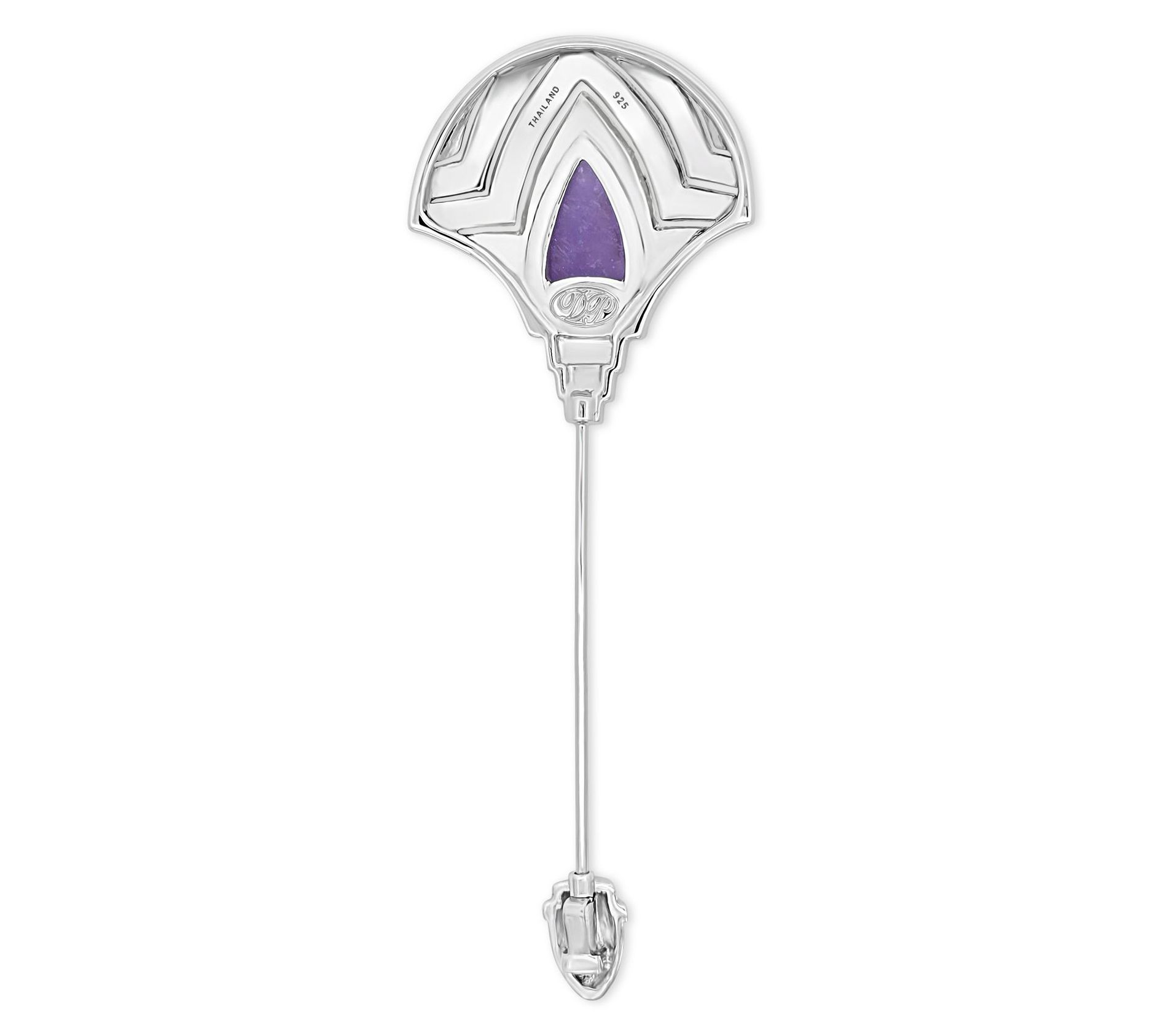 Elevate your style with this Dallas Prince Sterling Silver stick pin, featuring a stunning Art Deco pattern, a center of lavender jade, and rhodium-plated marcasite accents. The combination of pear and round cut stones adds unique flair, while the included pouch and box make gifting easy. From Dallas Prince.