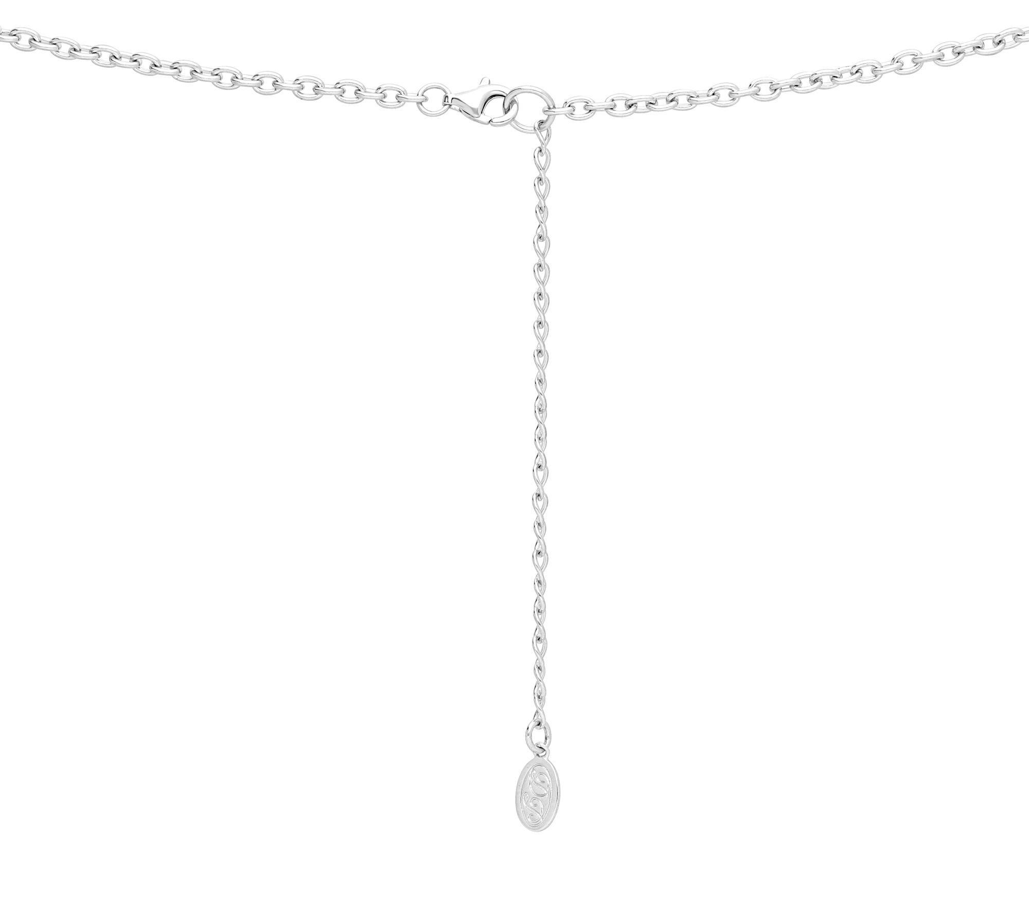 Approximate measurements: Chain 18"L plus 2"L extender x 1/16"W; pendant 1-3/8"L x 2-5/8"W