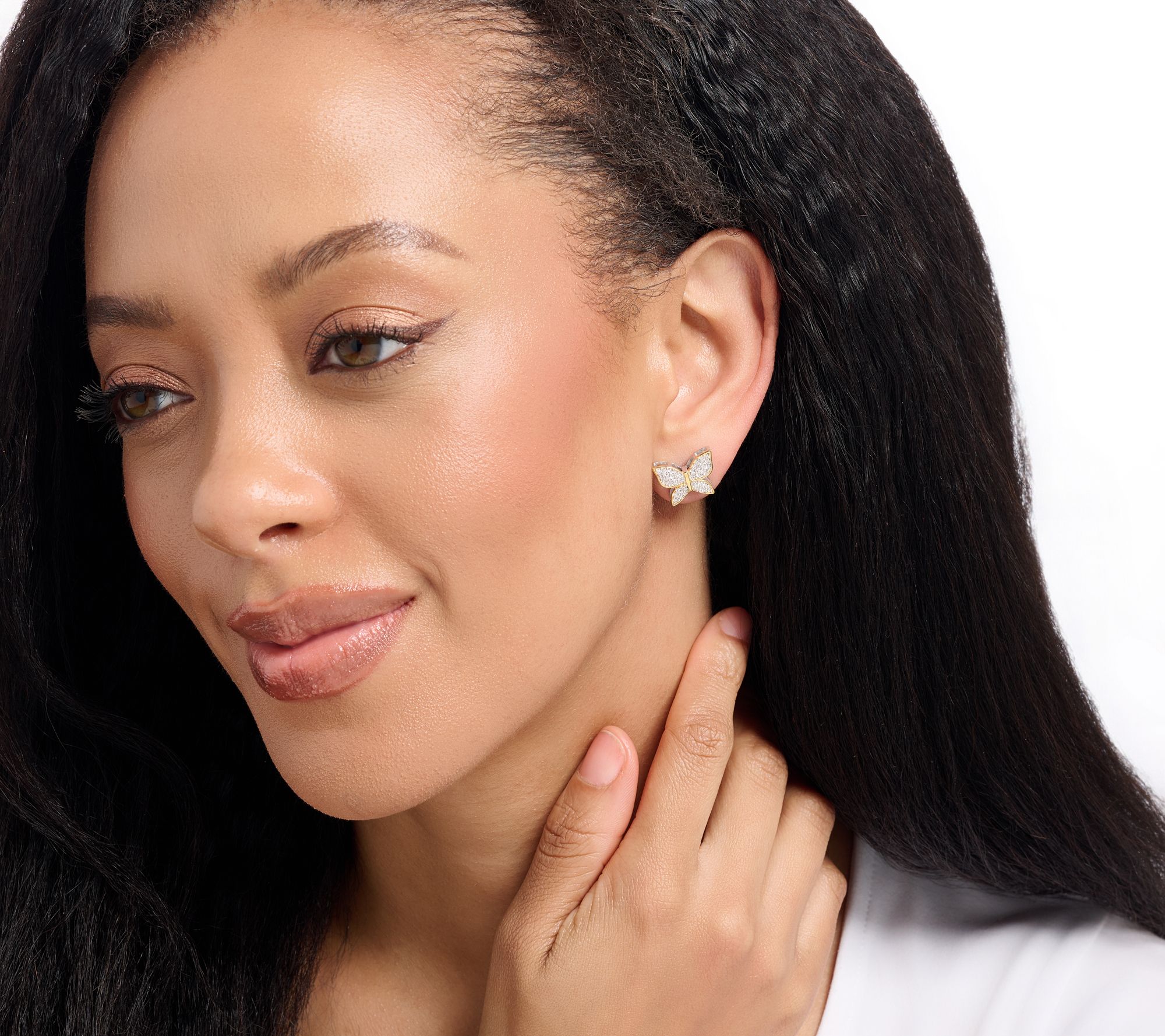 Make it glam. Make it you. The playful motif and sparkly gemstones of these harmony stud earrings make them an easy favorite for brightening meetings, brunch, or date night. From Dallas Prince Collection.