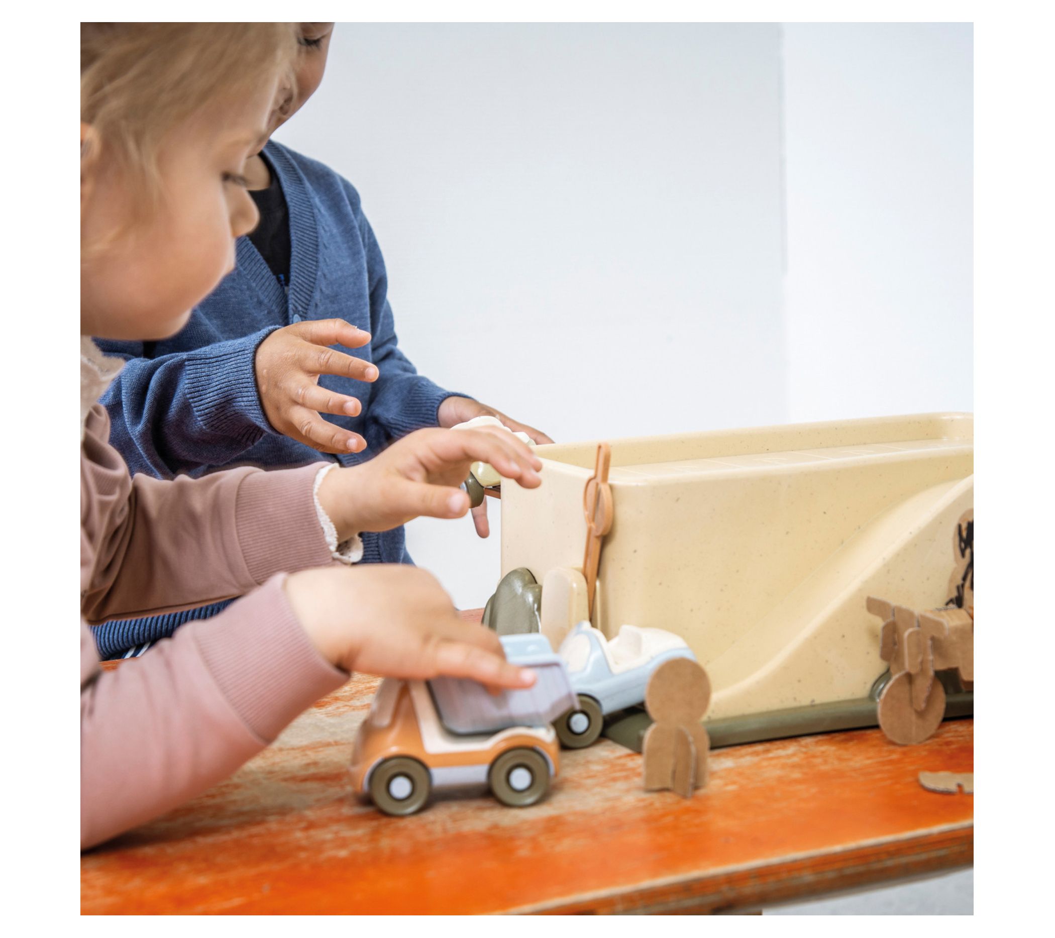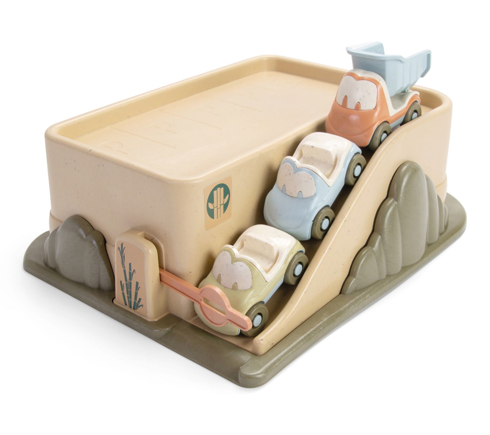 Rev up your engines and let your imagination soar with the Dantoy BIO car garage with ramp playset. This delightful set features three colorful toy vehicles and a garage, perfect for sparking creativity and enhancing fine motor skills. Whether racing around the house or embarking on thrilling adventures, this playset promises endless fun. From Dantoy.